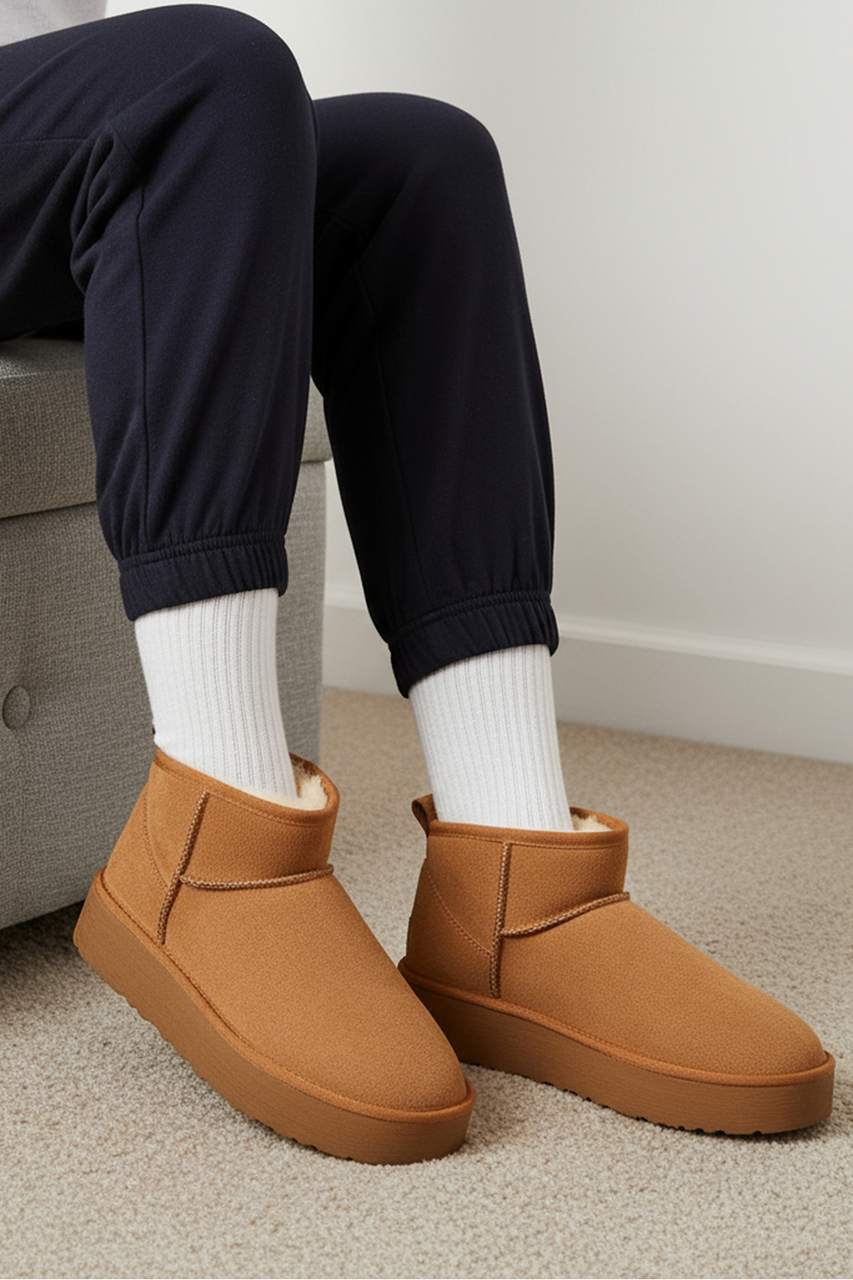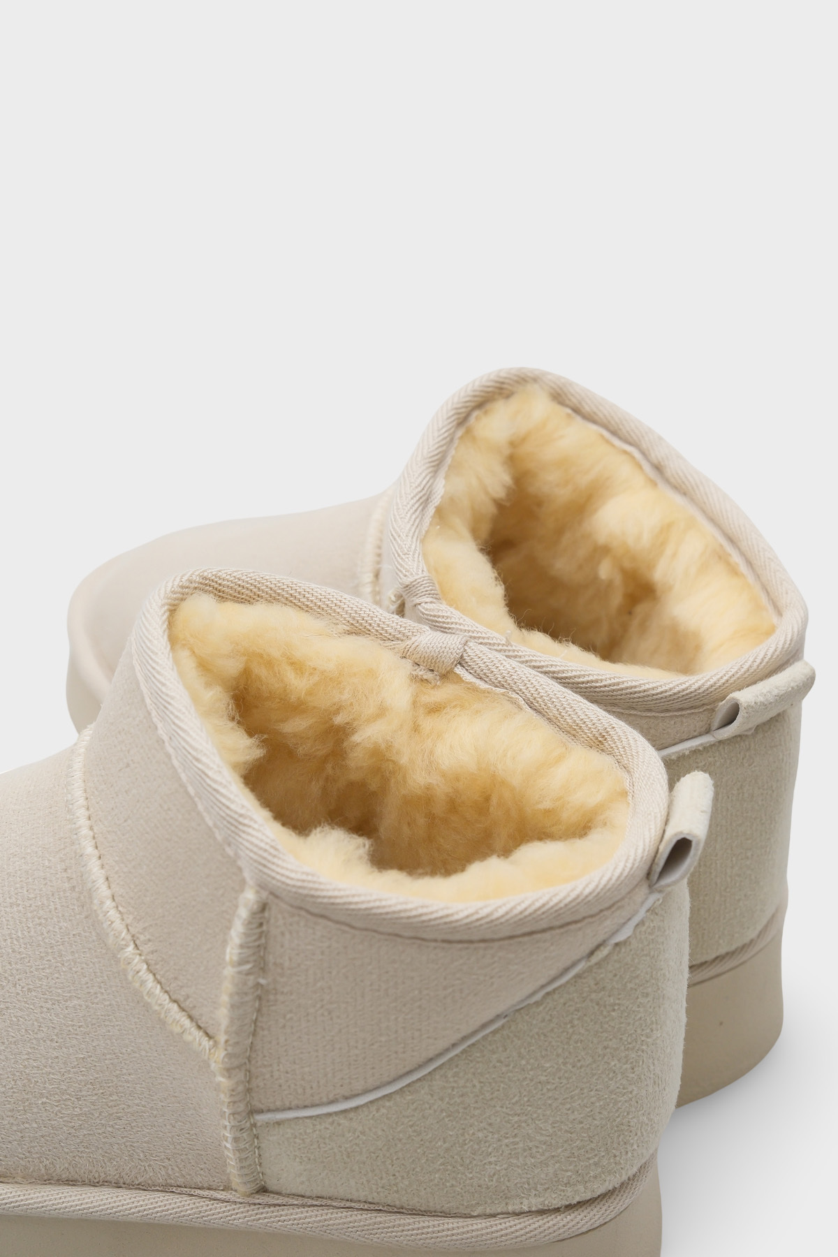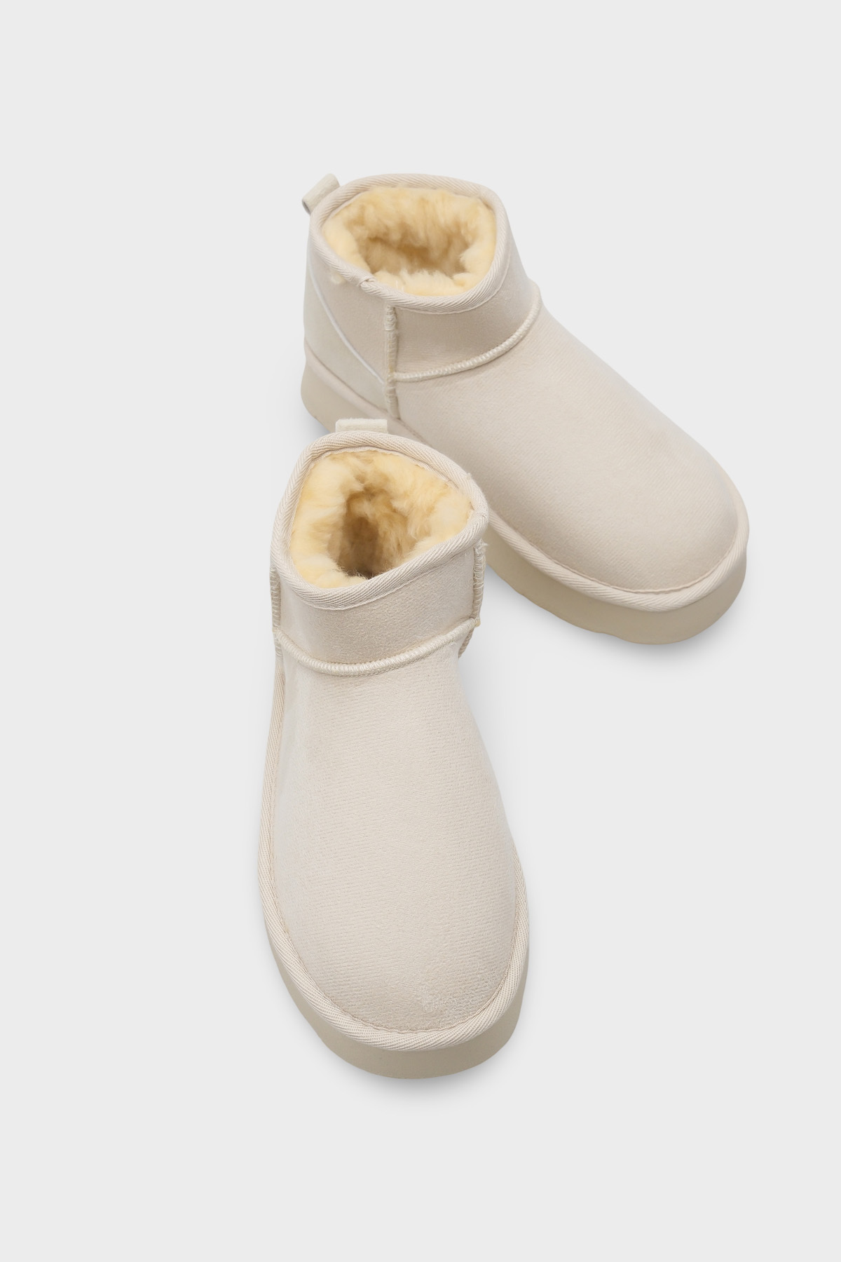 Kalın Tabanlı Yuvarlak Burunlu İçi Tüylü Bej Süet Yarım Bot
