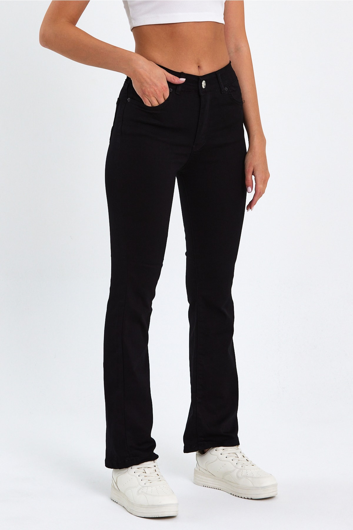 Ispanyol paça kesimiyle modern ve trend bir görünüm kazandırırken, likra materyali esnek yapısı sayesinde hareket özgürlüğünüzü artırır.