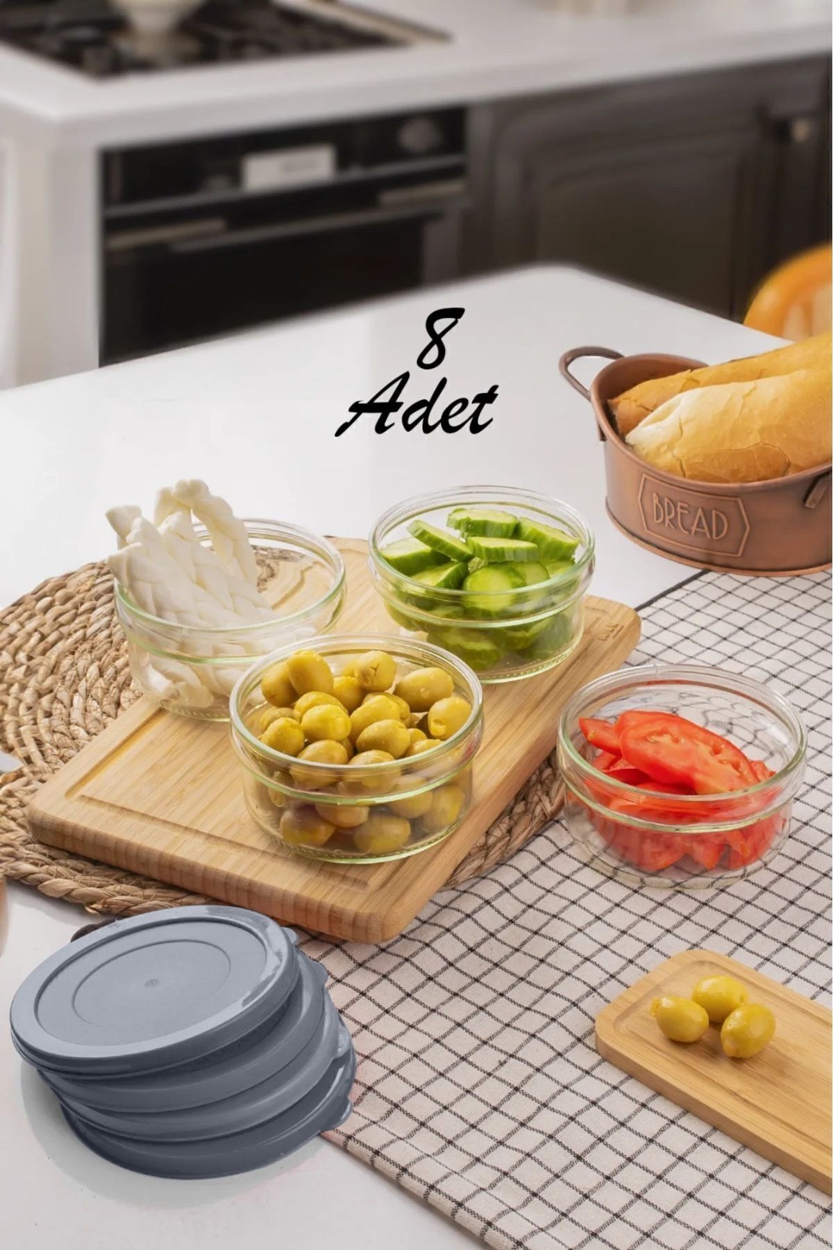 Zuri 8 li Kahvaltılık Reçellik Çerezlik Renkli Kapaklı Cam Kase Saklama Kabı 400 cc