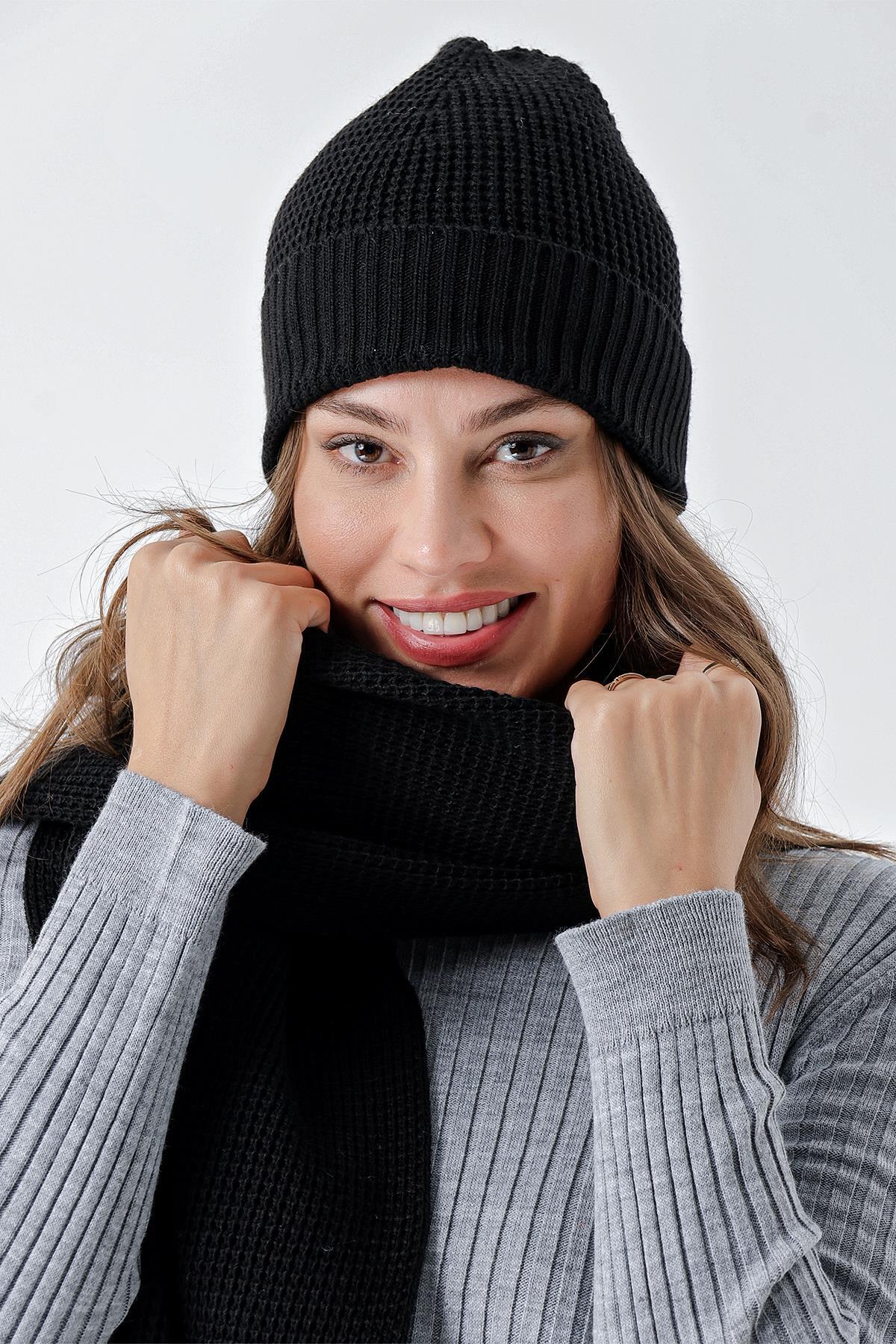Selanik dokulu, orta kalınlıkta ve sıcak tutan yapıda, soft tuşe atkı-bere takımı.