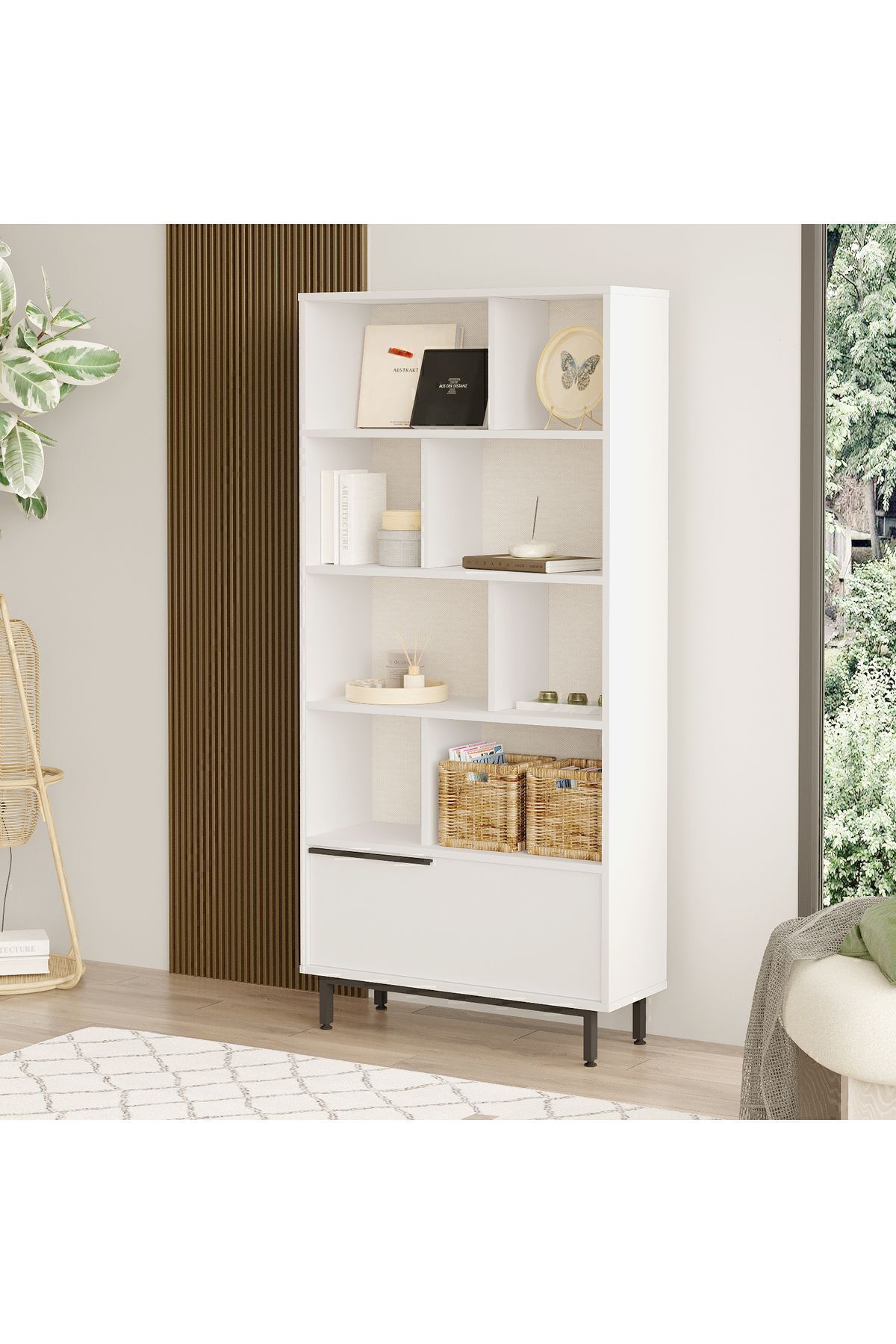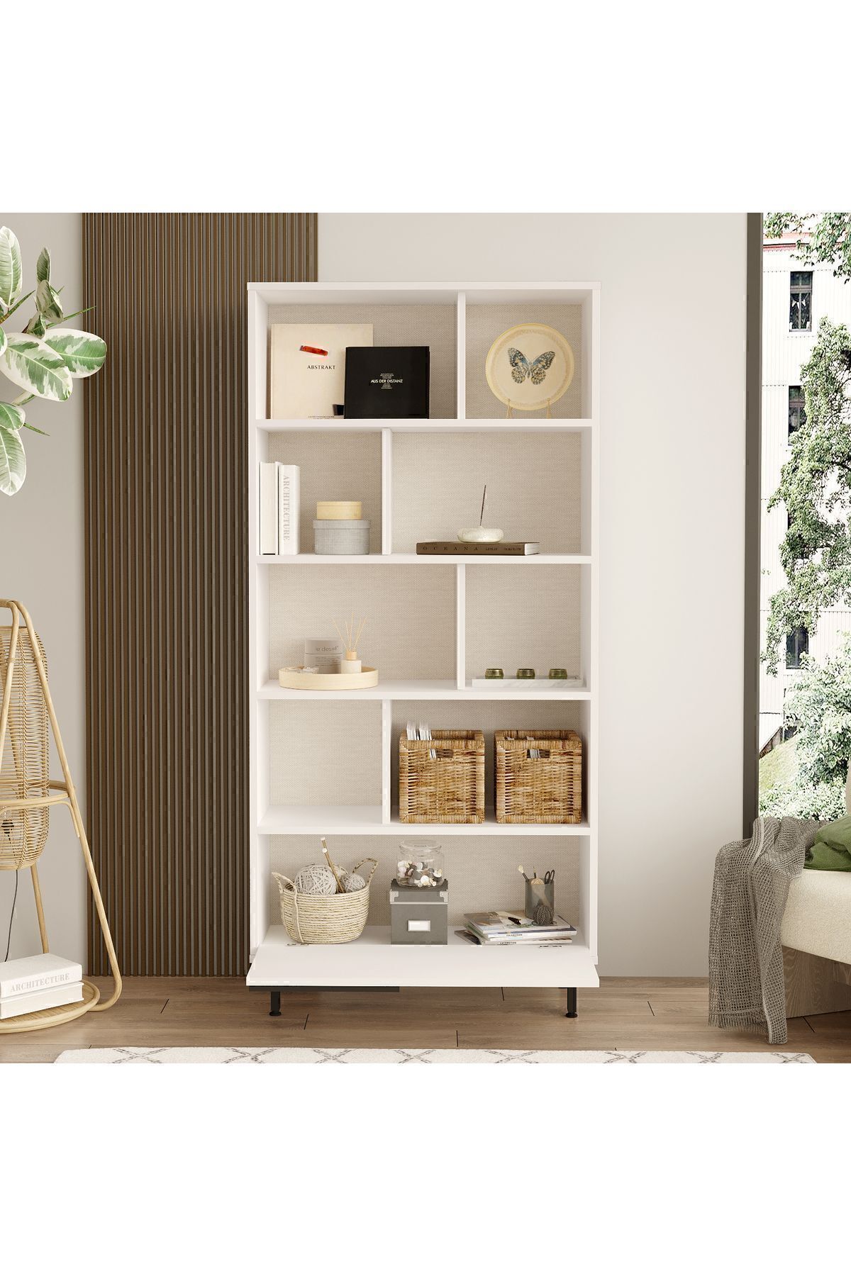 Yurudesign Ocean Kitaplık Raf Metal Ayaklı 176cm Kapaklı Beyaz ON4-W Renk : Beyaz