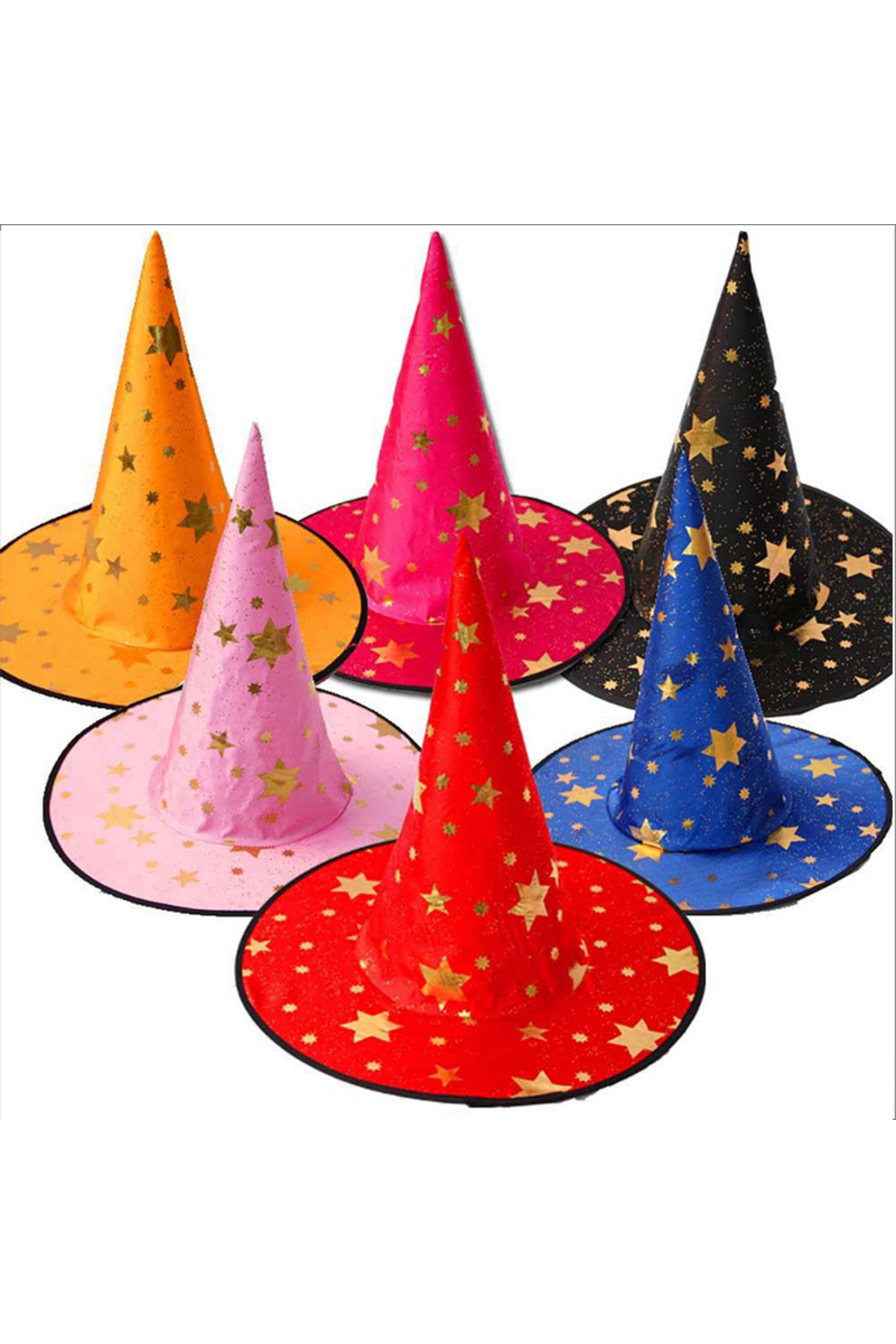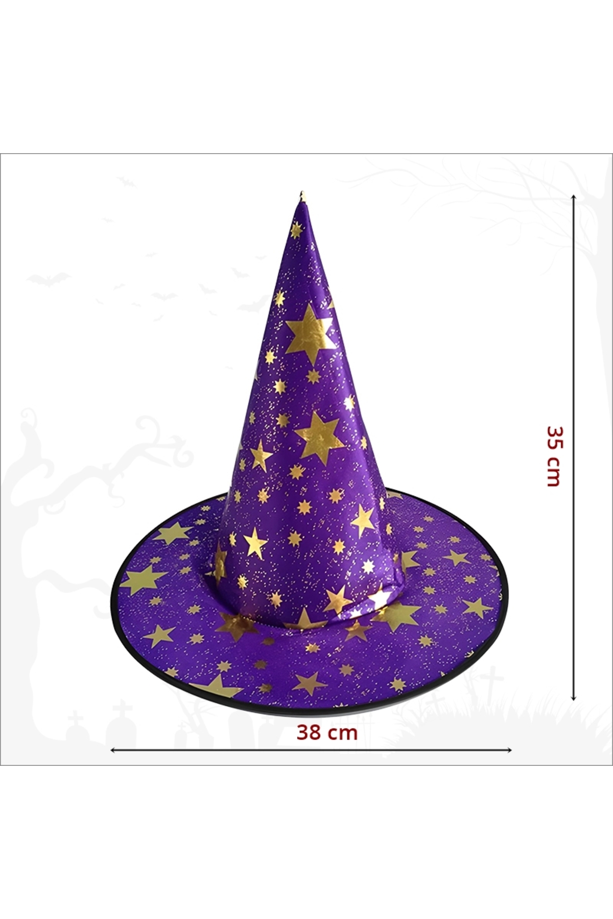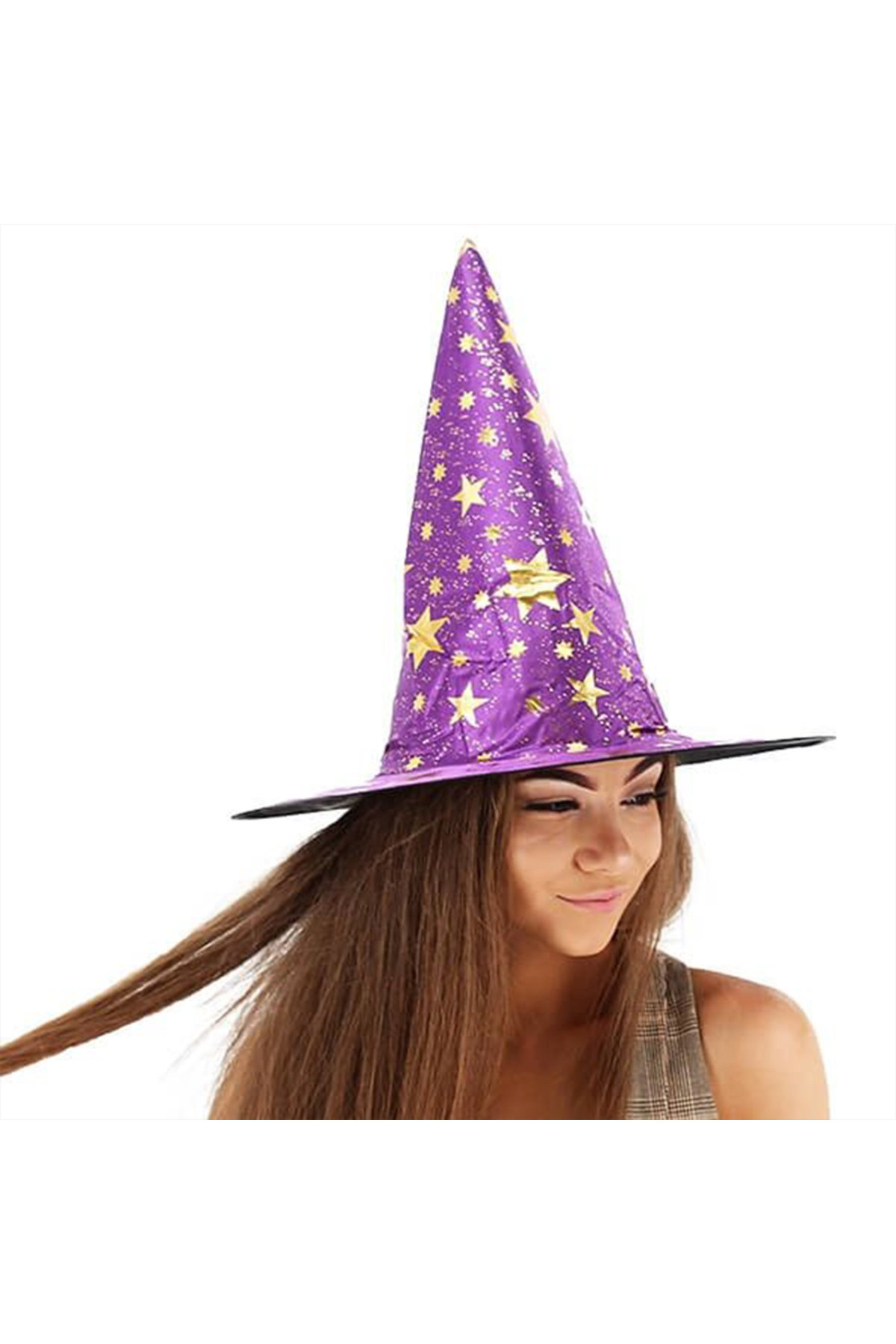 Cadılar Bayramı Halloween Dekor Süsleri ve Halloween Parti Malzemeleri SüSLe'de! Çocuk ve yetişkin kullanımına uygun 38cm çapında ve 35cm yüksekliğinde kaliteli kumaş üzeri yıldız baskılı Halloween Cadı Şapkası.