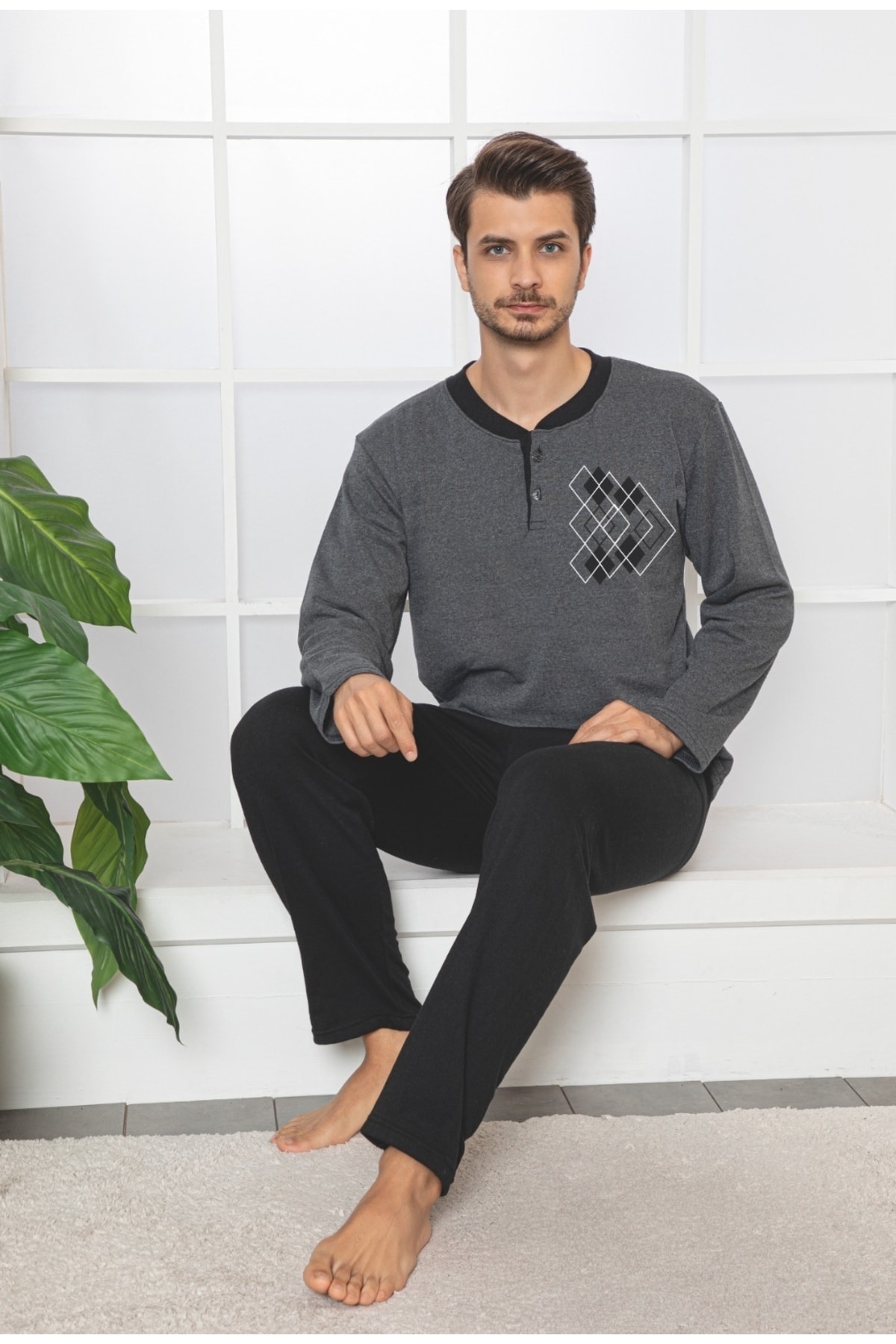 Sweatshirt-pantolon alt üst takım olarak tasarlanmış bu pijama takımı, günlük giyimden esinlenerek evde şıklığı yakalamayı amaçlamaktadır.
