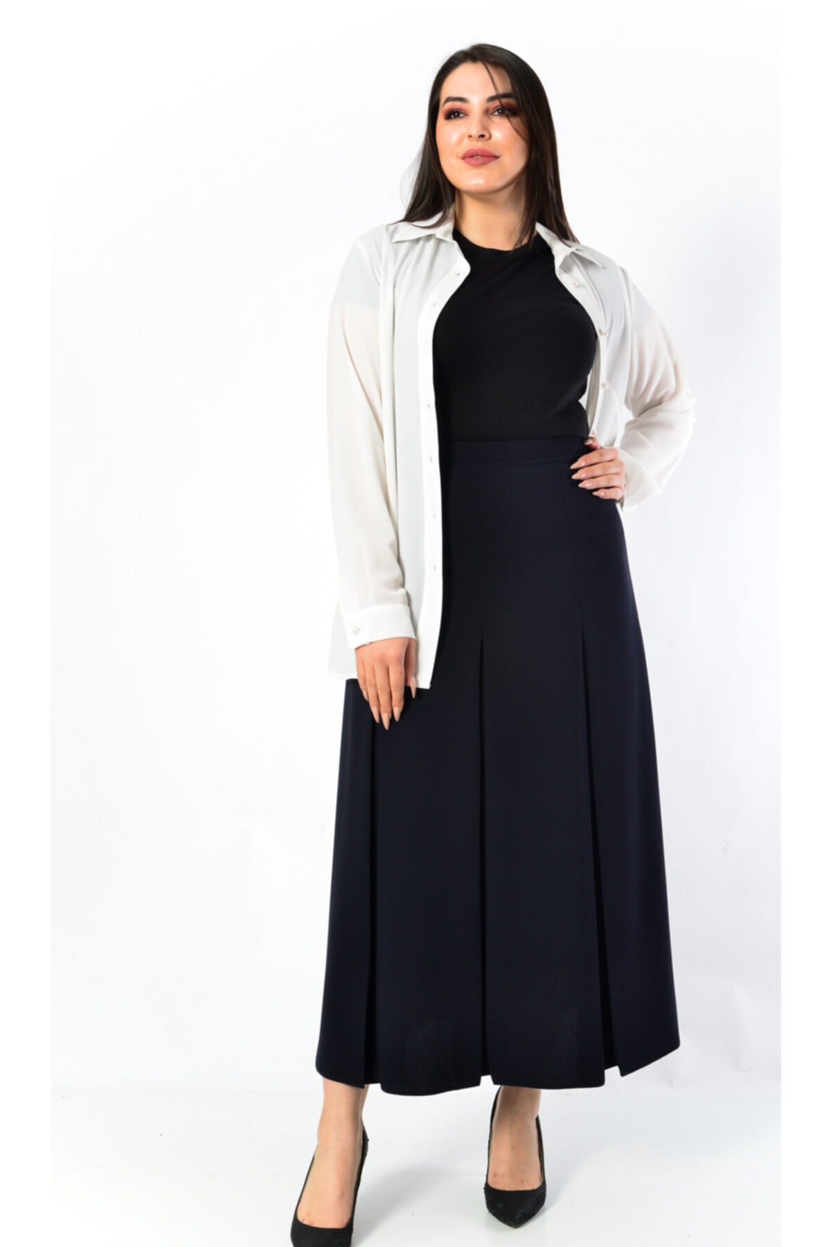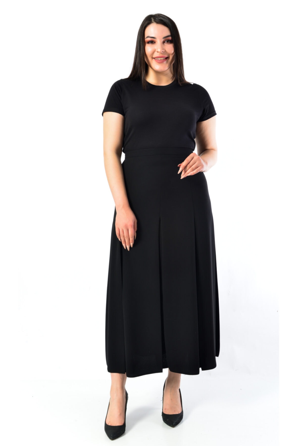 Pileli kalıbı ile feminen bir siluet oluşturarak bacakları daha uzun gösterirken zarif bir görünüm sağlar.