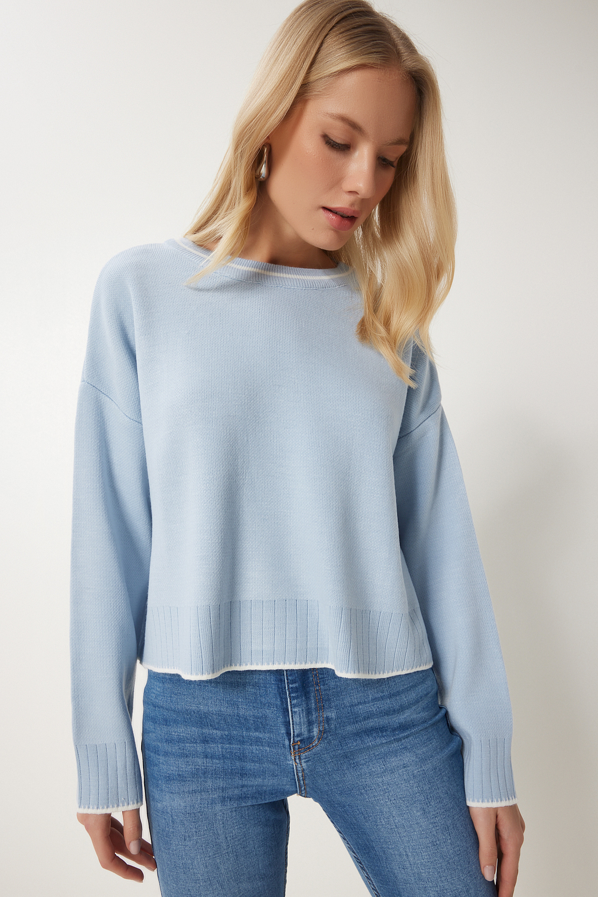 Bisiklet yaka tasarımı, sade ve şık bir görünüm sunar