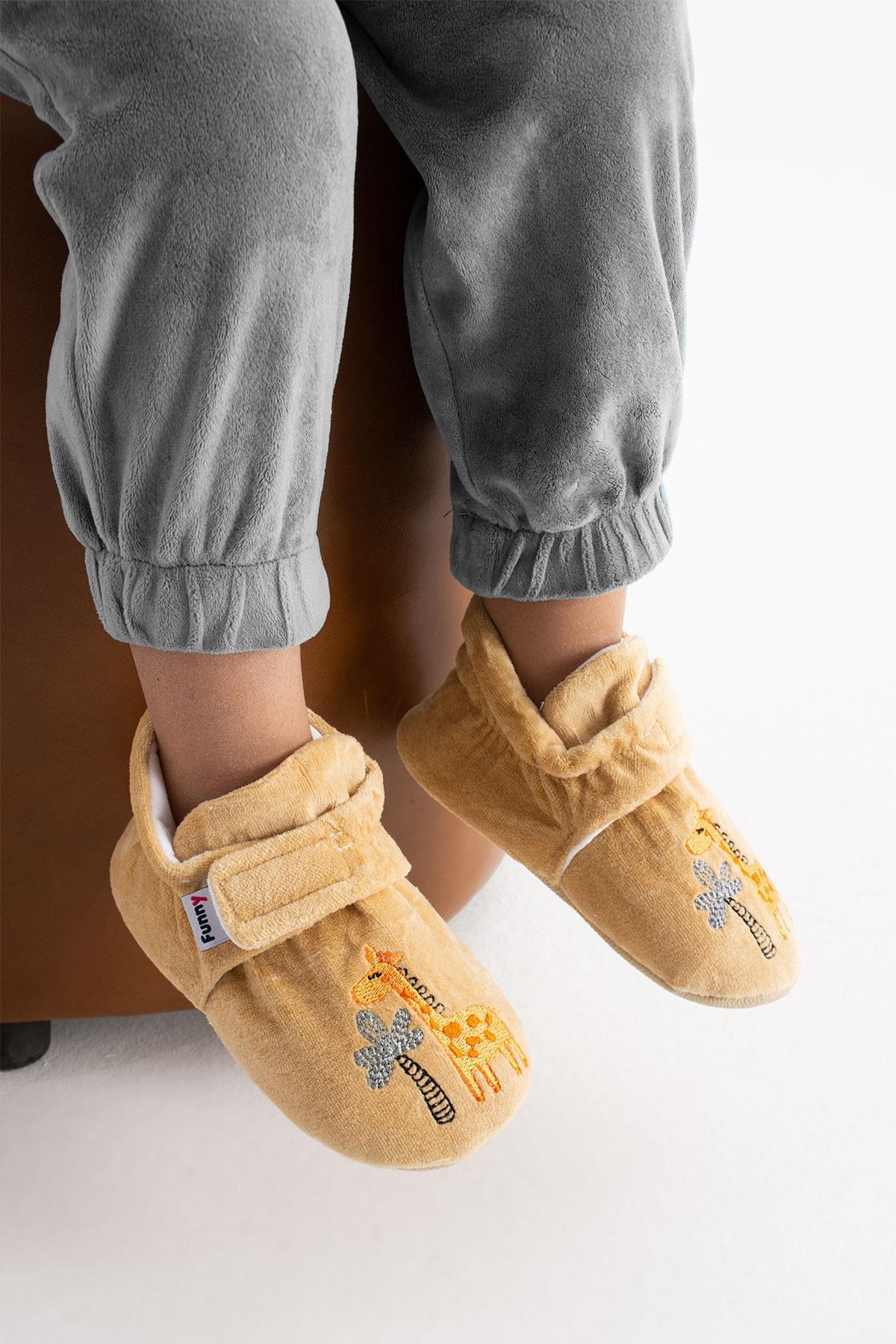 Ürün Açıklaması: Nakışlı Cırt cırtlı Rahat Panduf: Esnek, Ergonomik Yumuşak Taban ve Özel Tasarım Organik Rahat Hava Alan Yüzey Bebeklerinizin minik ayakları için özenle ürettiğimiz bu şık panduflar, ergonomik yumuşak tabanı ve esnek yapısıyla günden güne büyüyen ayaklar için ideal bir konfor sunar.