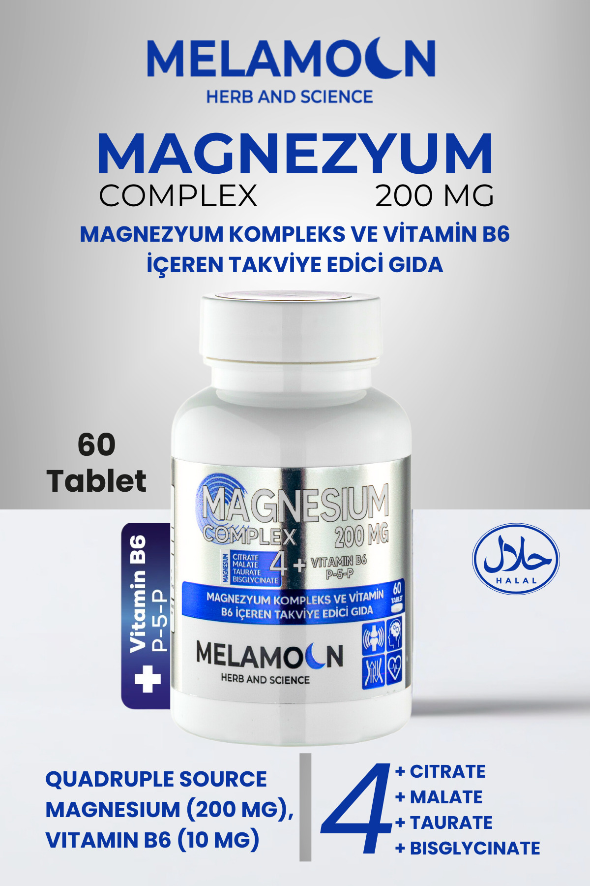 Magnezyum Kompleks Ve Vitamin B6 (p-5-p) (bisglisinat,malat,taurat,sitrat) 60 Tablet