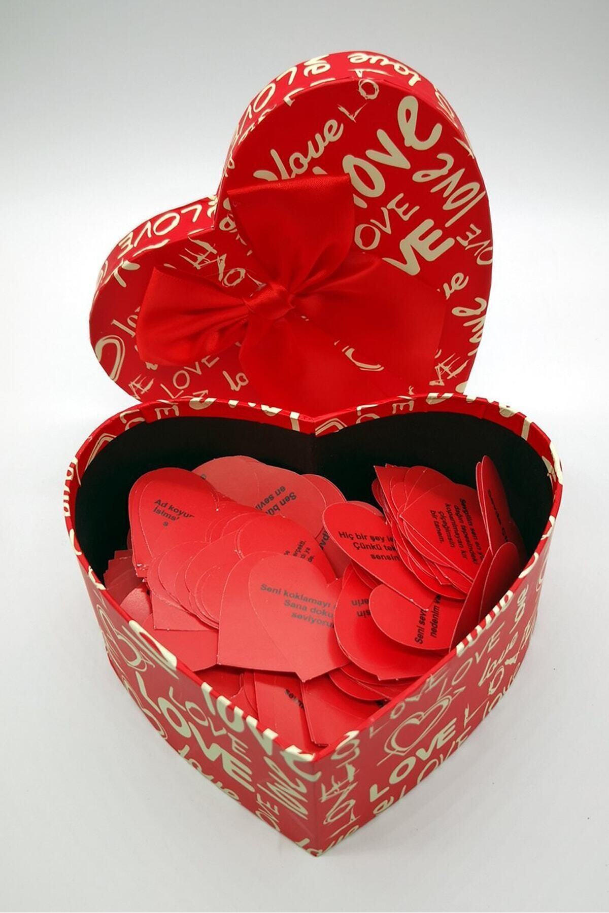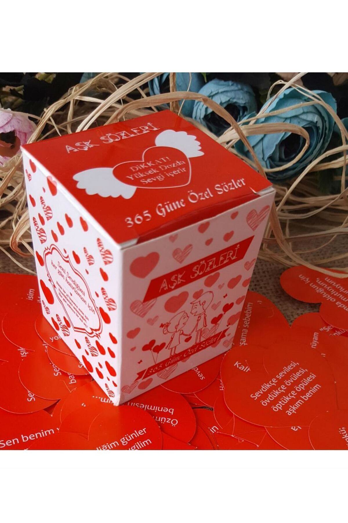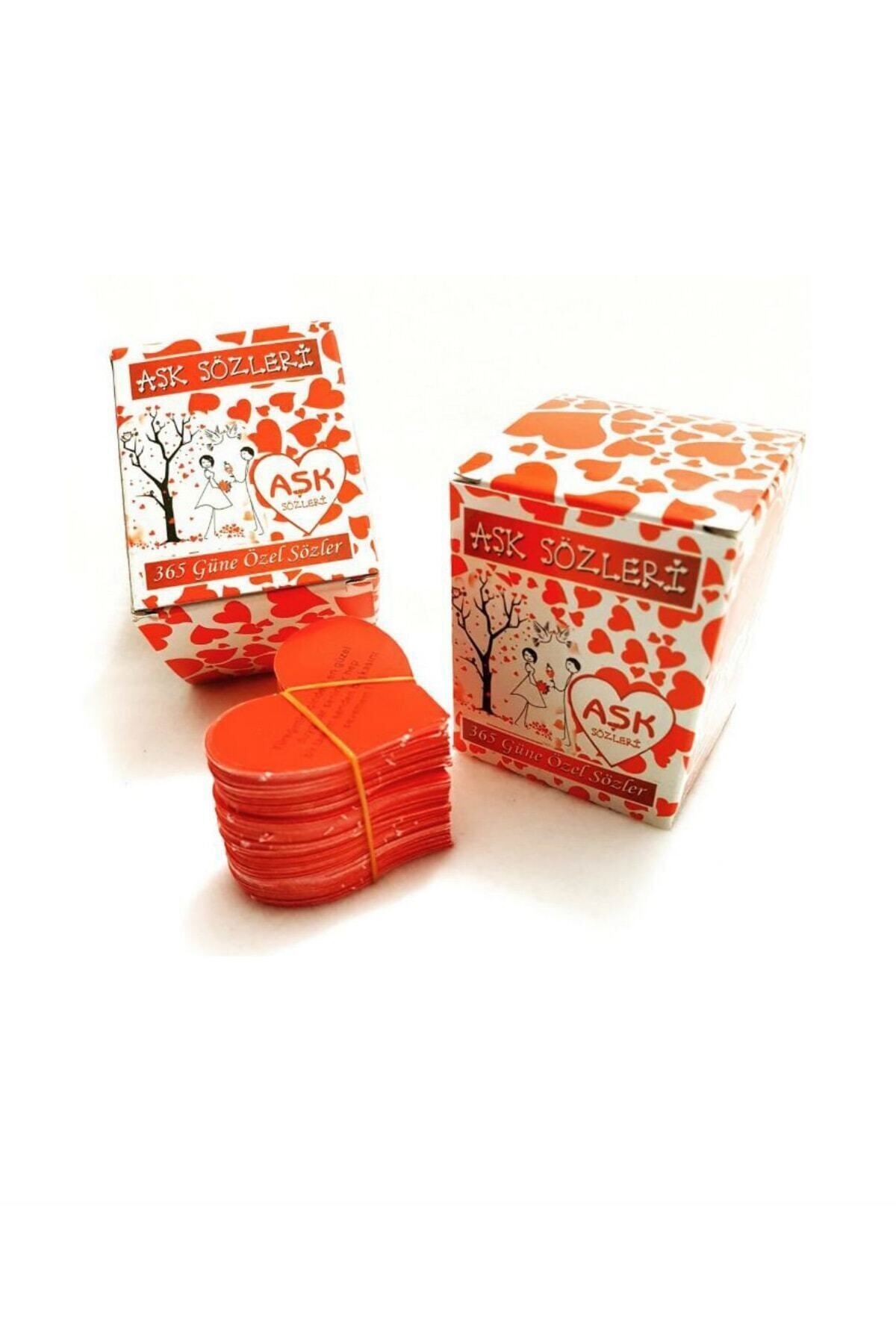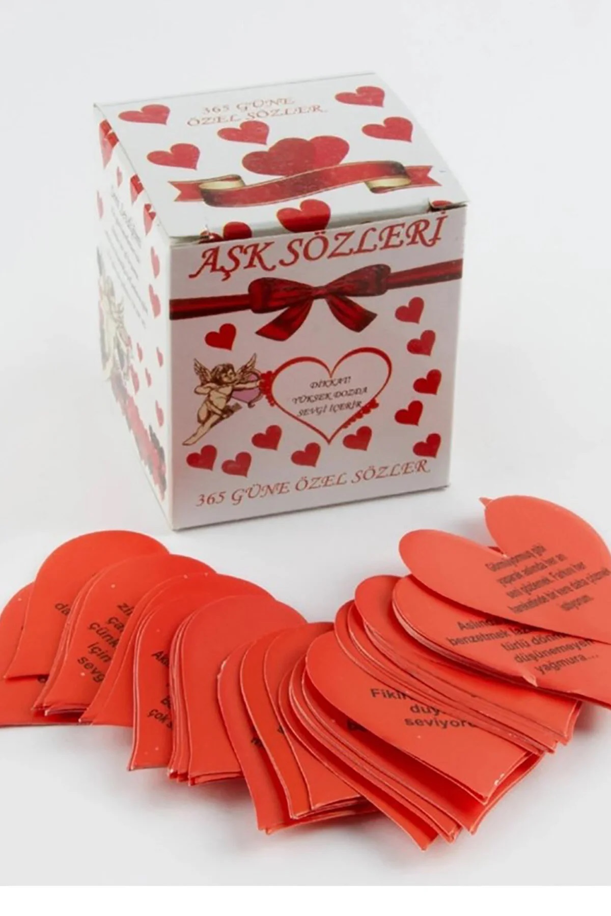 Paket İçeriği: 365 adet Aşk Mesajı Sözleri 365 adet Aşk Mesajı Sözleri kırmızı renkli ve kalp şeklindedir.