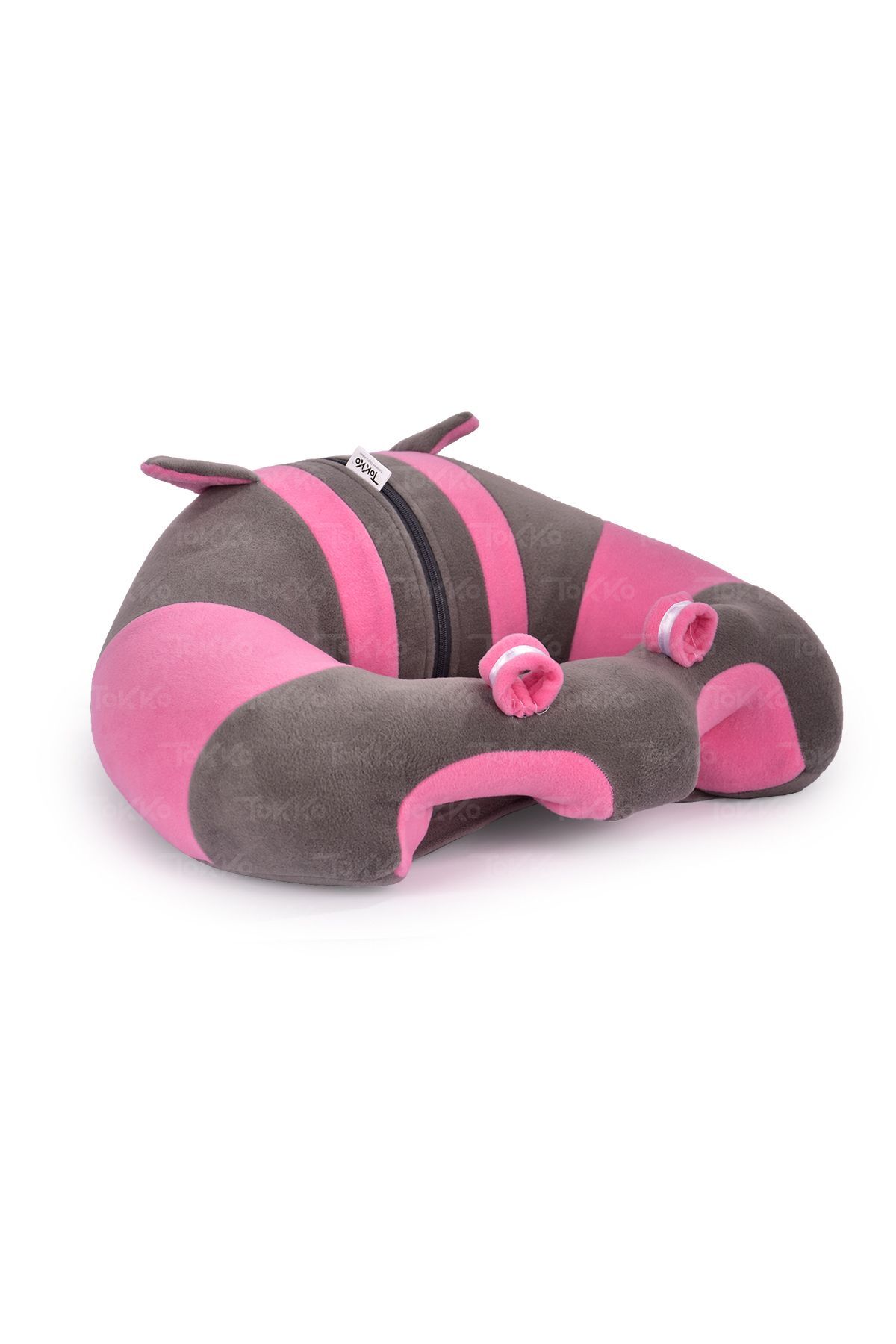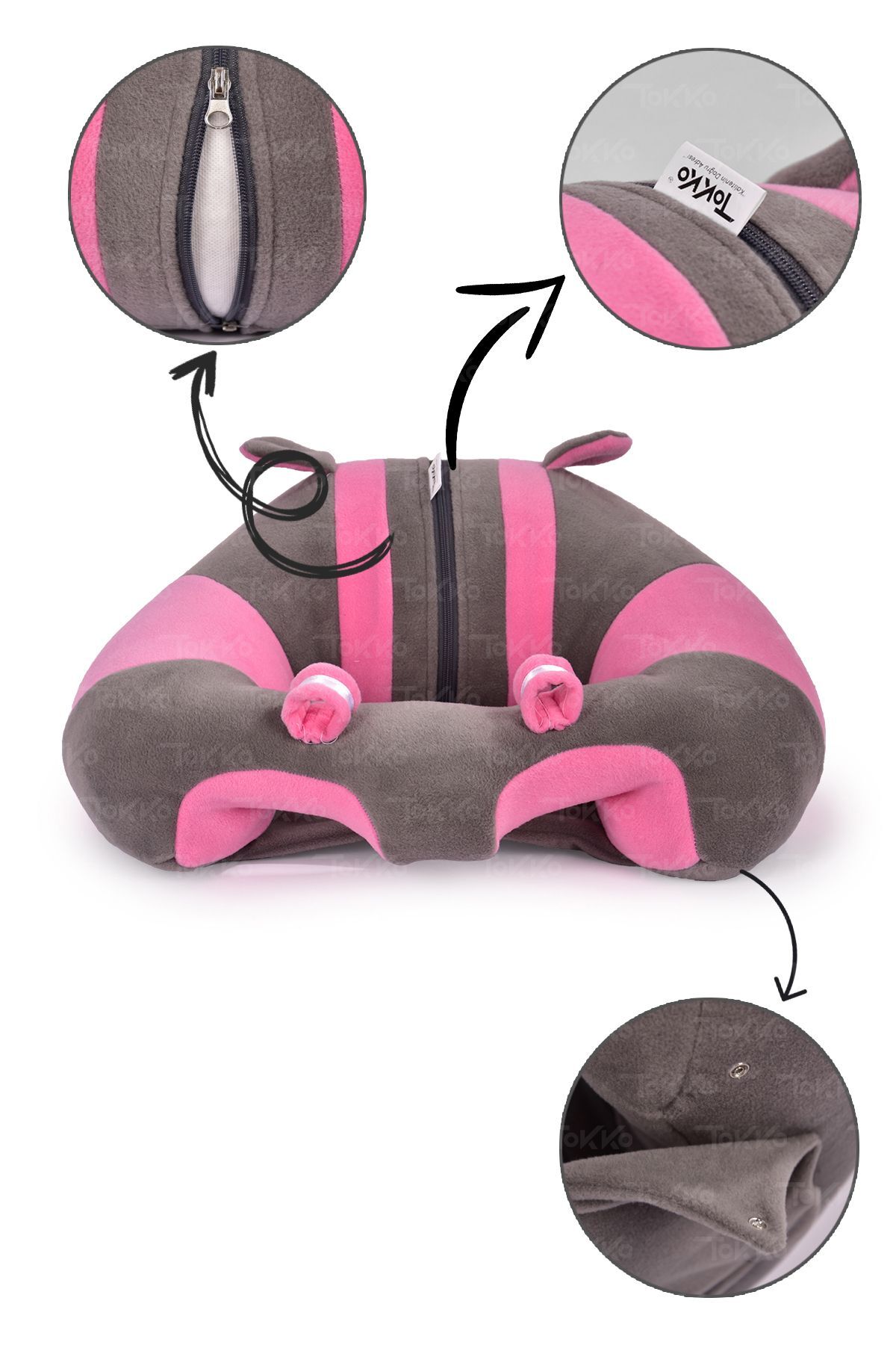 Elyaf Dolgu Bebek Oturma Destek Minderi - Devrilmez Bebek Koltuğu - Büyük Bebek Oturağı Gri Pembe
