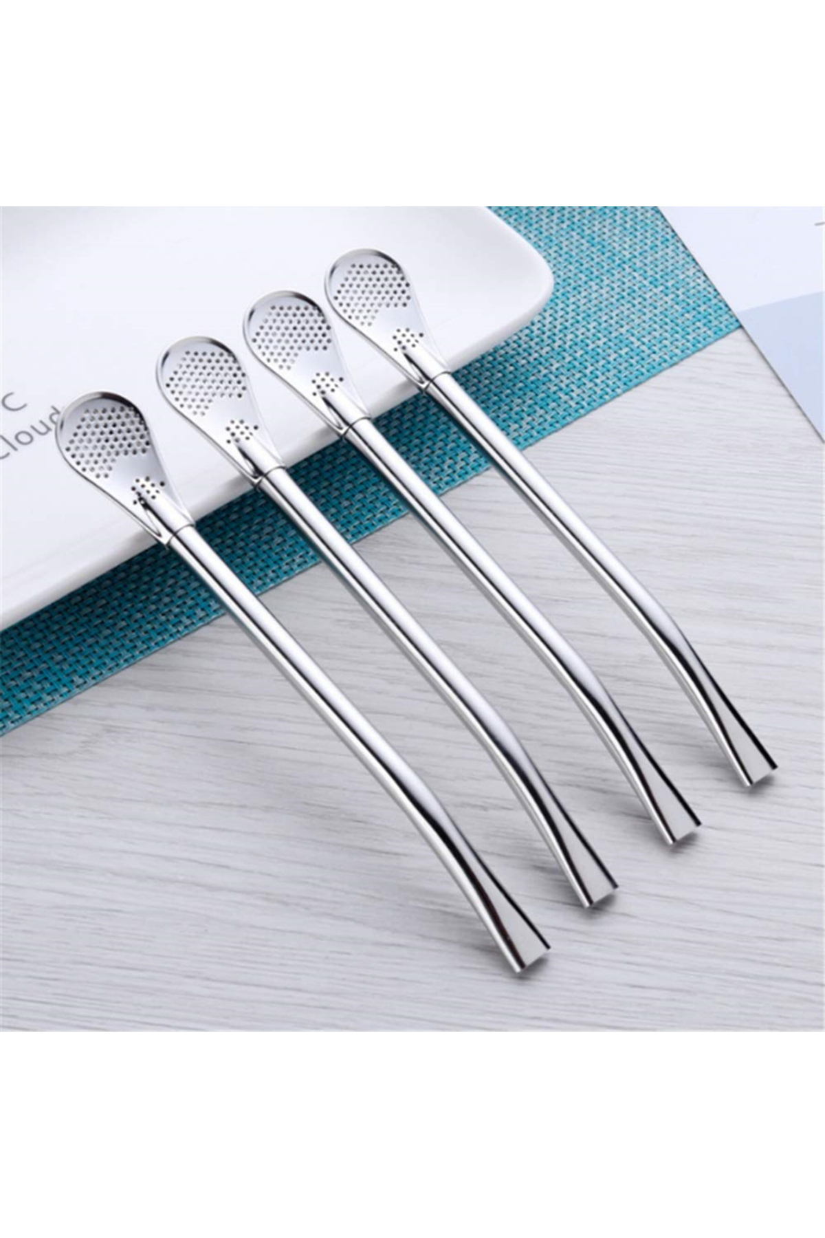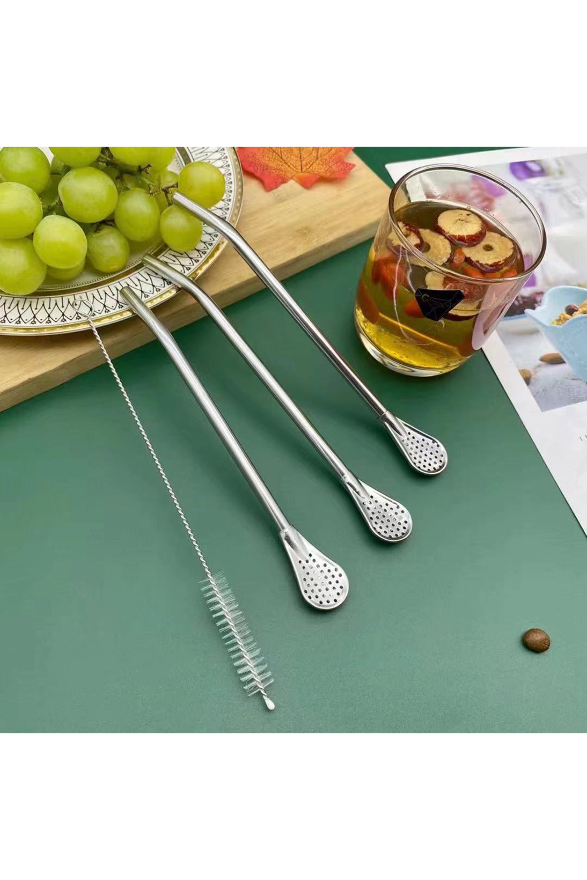 1adet paslanmaz çelik pipet filtre kaşık kullanımlık Yerba Mate Bombilla Metal gümüş +1adet firça