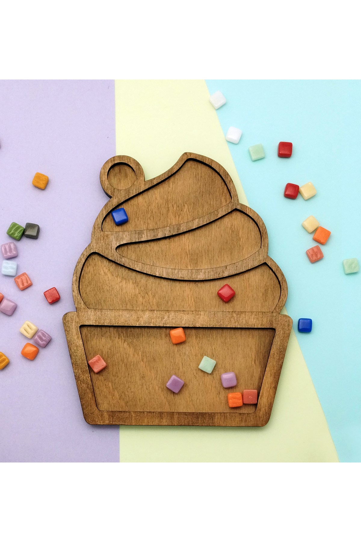 Mia Creative Art Ahşap Çocuk Mozaik Seti - Cup Cake Figürü ( 15 x 18 Cm )