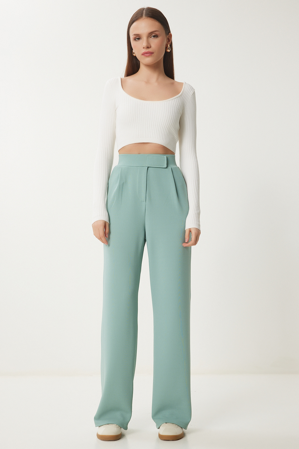 Geniş paça tasarımı modern siluetiyle trendleri takip ederken rahatlığından ödün vermez