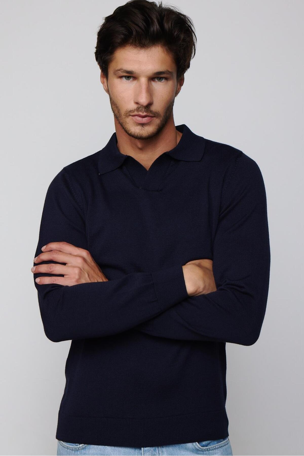 -%50 pamuk ve %50 akrilik karışımından üretilmiş bu polo kazak, yumuşak dokusuyla konforlu bir kullanım sunar.