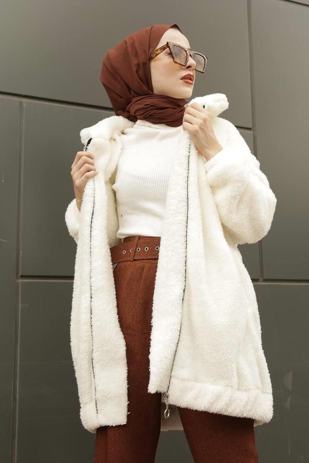 kadın modest basic mevsimlik kışlık Fermuarlı cepli Peluş Tesettür Hırka kap