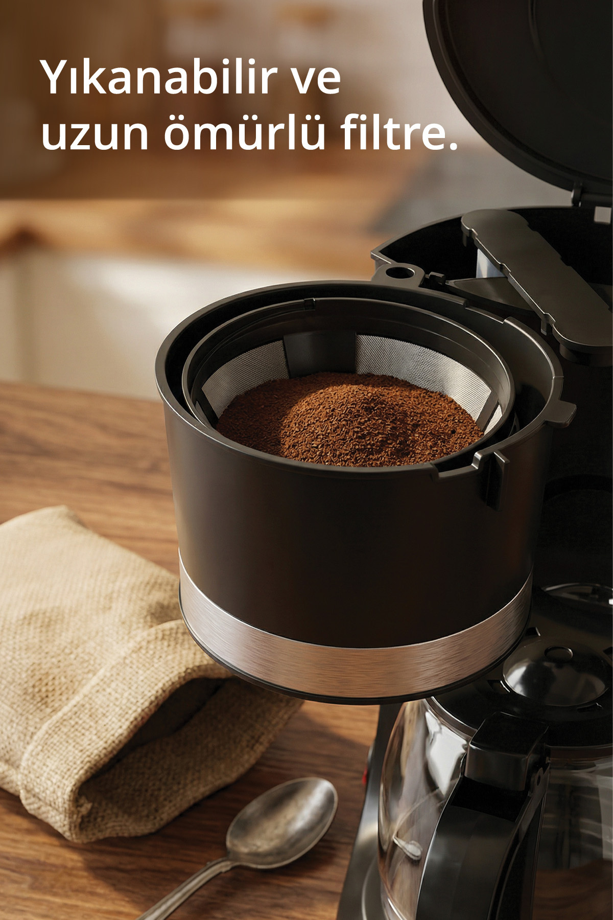 Damlama emniyeti özelliği sayesinde, kahve hazırlığı sırasında olası dökülmeleri önler ve temiz bir kullanım sunar