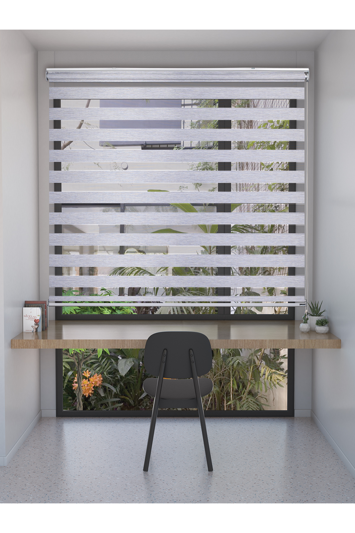 Bu modern ve şık perdelerin bambu zebra formu sayesinde gölge ile aydınlık ya da şeffaflık ve mahremiyet arasında kolayda geçiş yapabilirsiniz.
