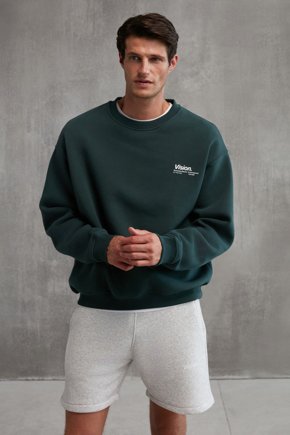 Ernest Erkek Organik Pamuklu Yumuşacık Baskı Detaylı Bisiklet Yaka İçi Polarlı Koyu Yeşil Sweat