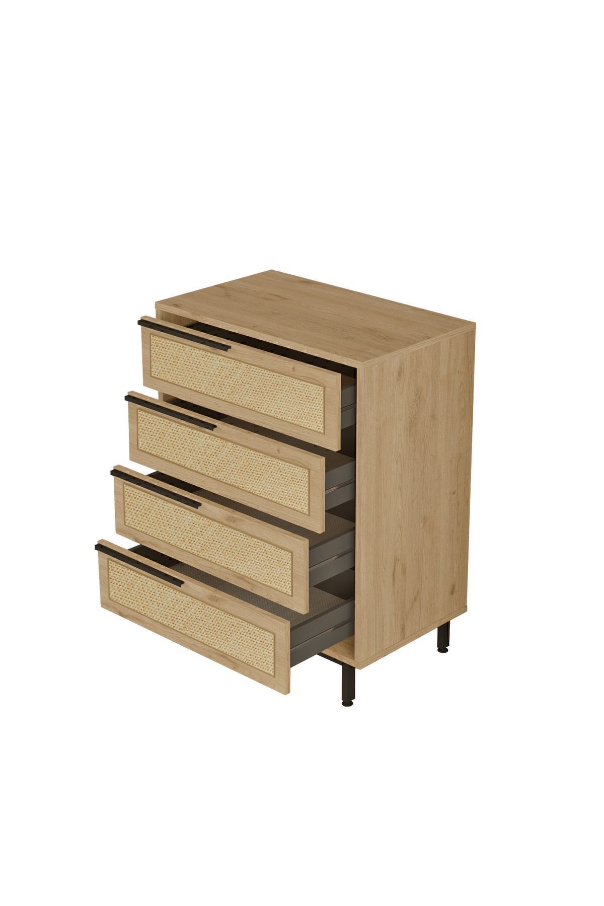 Yurudesign Ocean Şifonyer 4 Çekmece Metal Ayaklı Uv Baskı Sepet-Jüt ON17-SU Renk : Sepet-Jüt