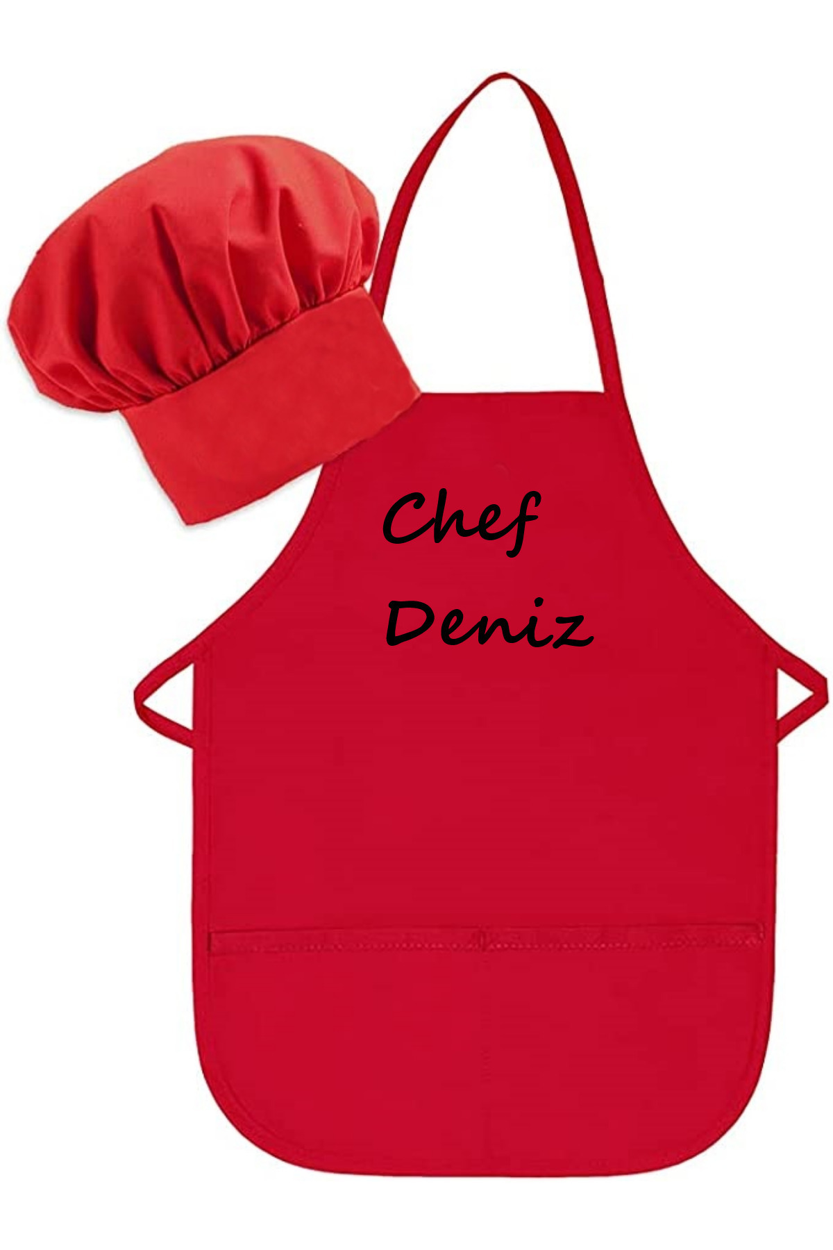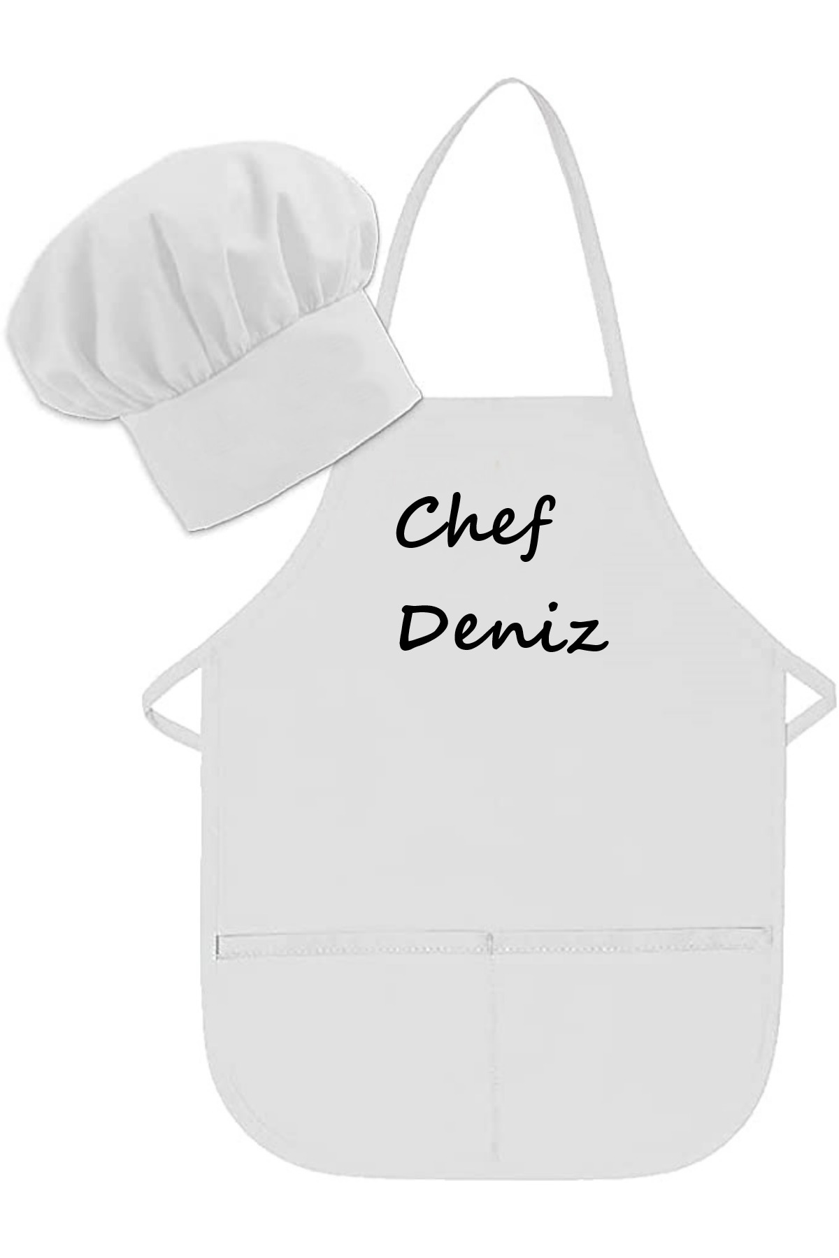 İsme Özel Çocuk Şef Önlük / Okul Etkinlik Önlük / Aşçı / Çocuk Mutfak Önlük / Desenli Baskılı Önlük
