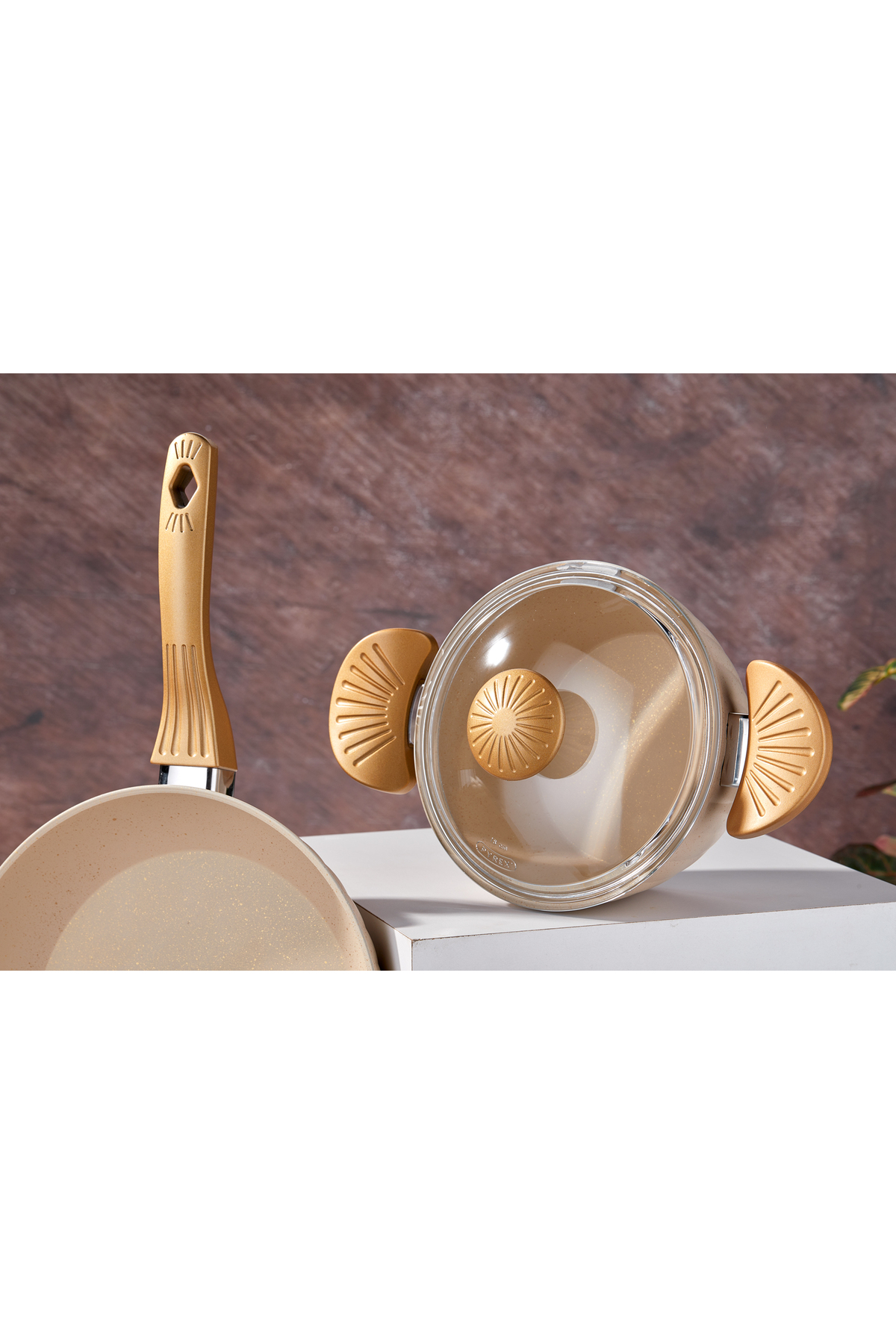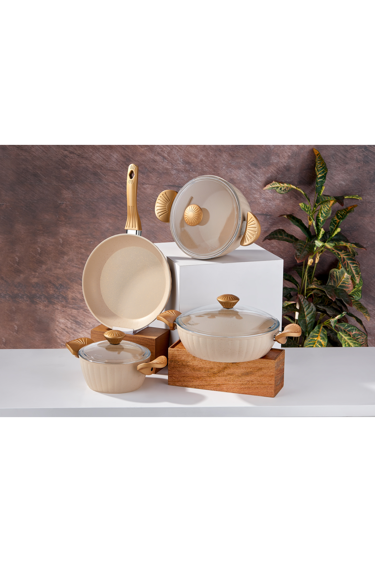 Taç Dilim 7 Parça Granit Tencere Seti Krem