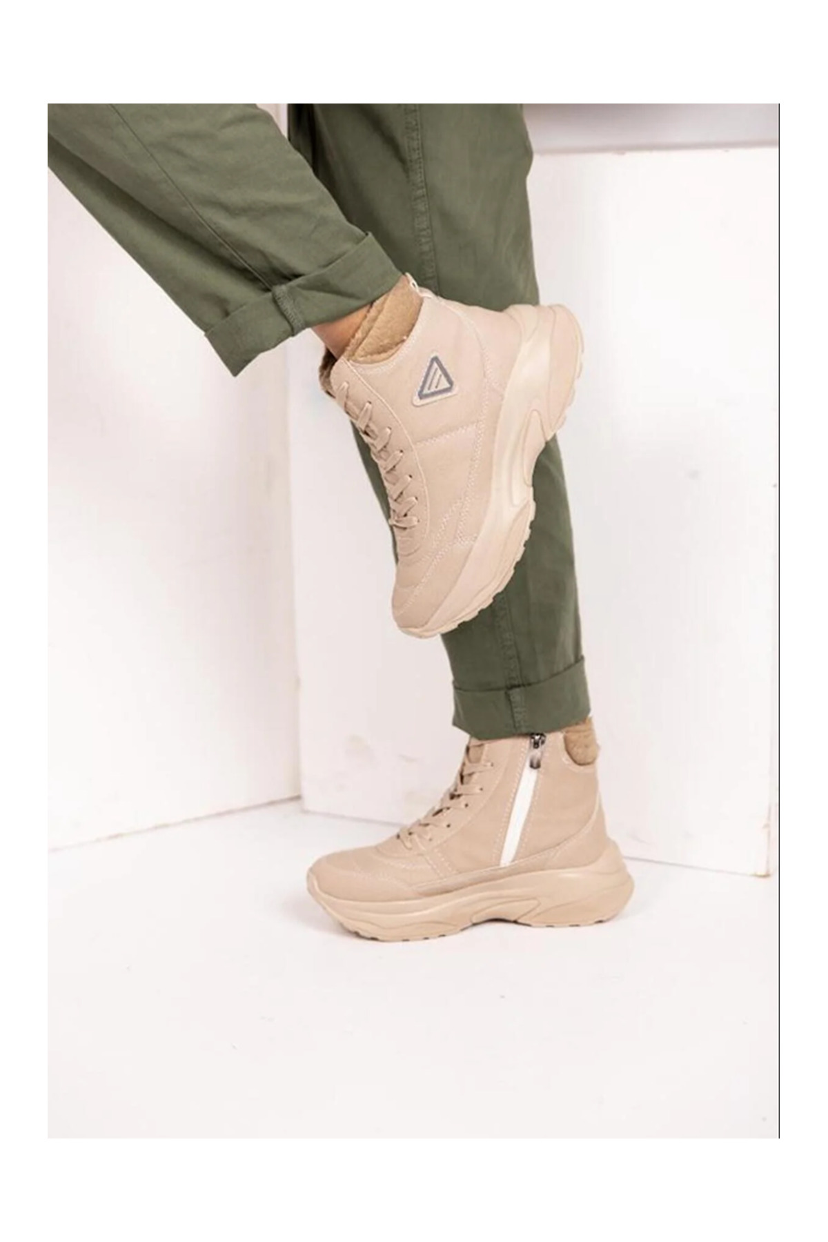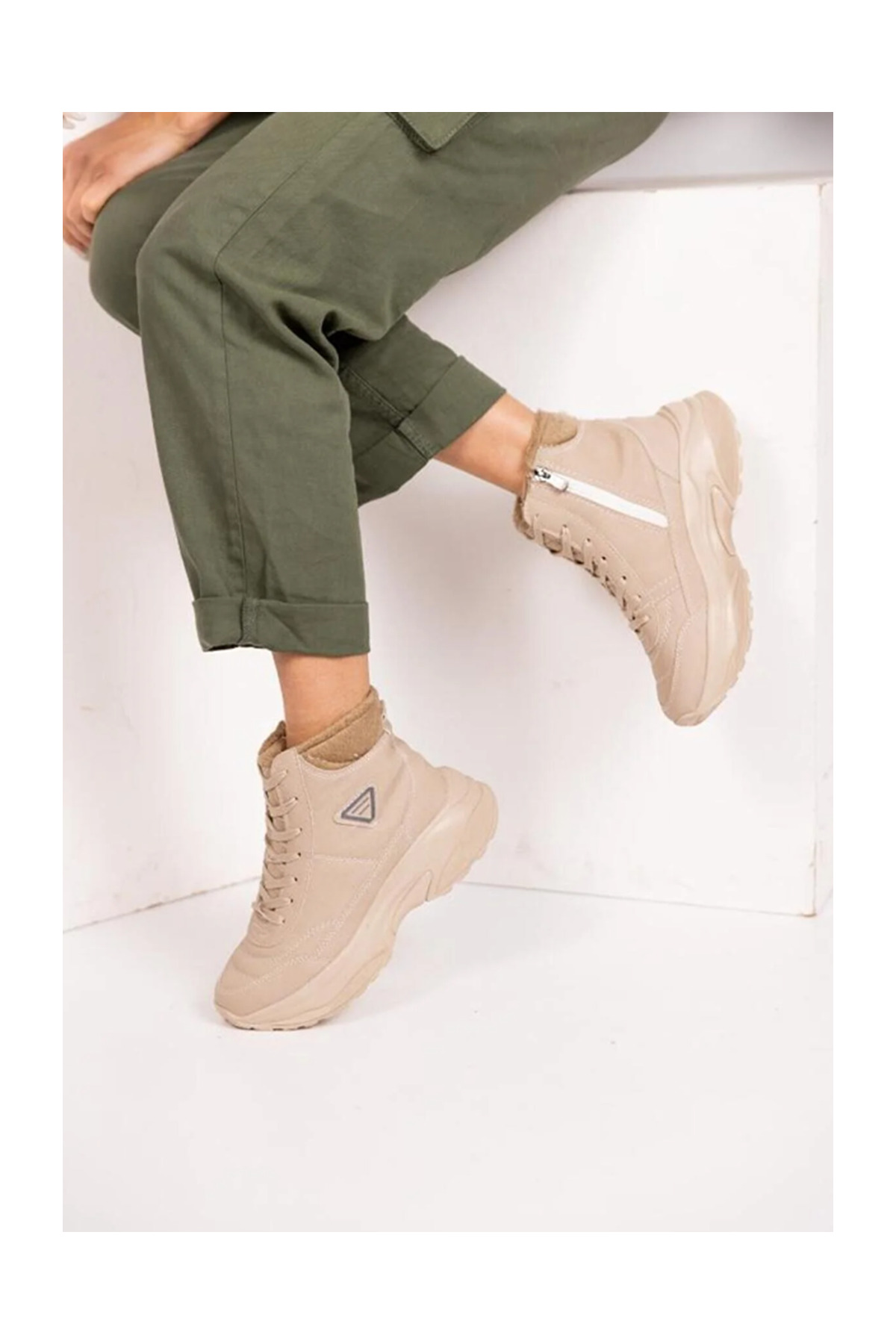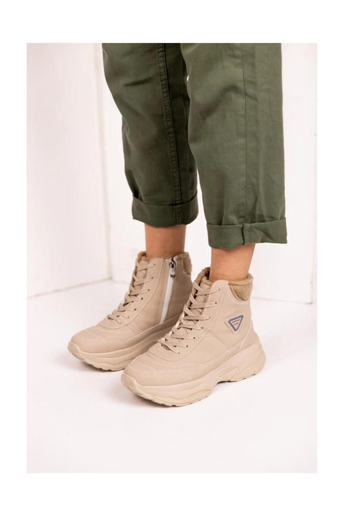 Acropol İçi Yünlü Bej Kürklü Kışlık Kadın Bot - Bej
