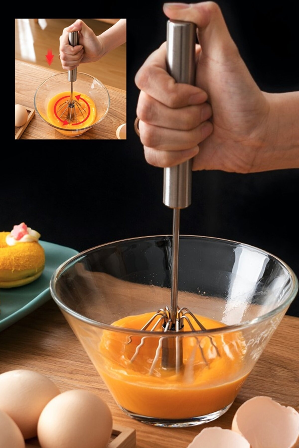 İçindeki mekanizması sayesinde elinizi hiç sallamadan sadece basarak ve kaldırarak çok hızlı dönmesini sağlayabilir ve malzemenizi rahatlıkla çırpabilirsiniz.