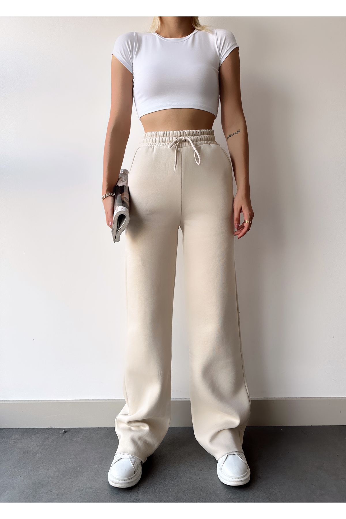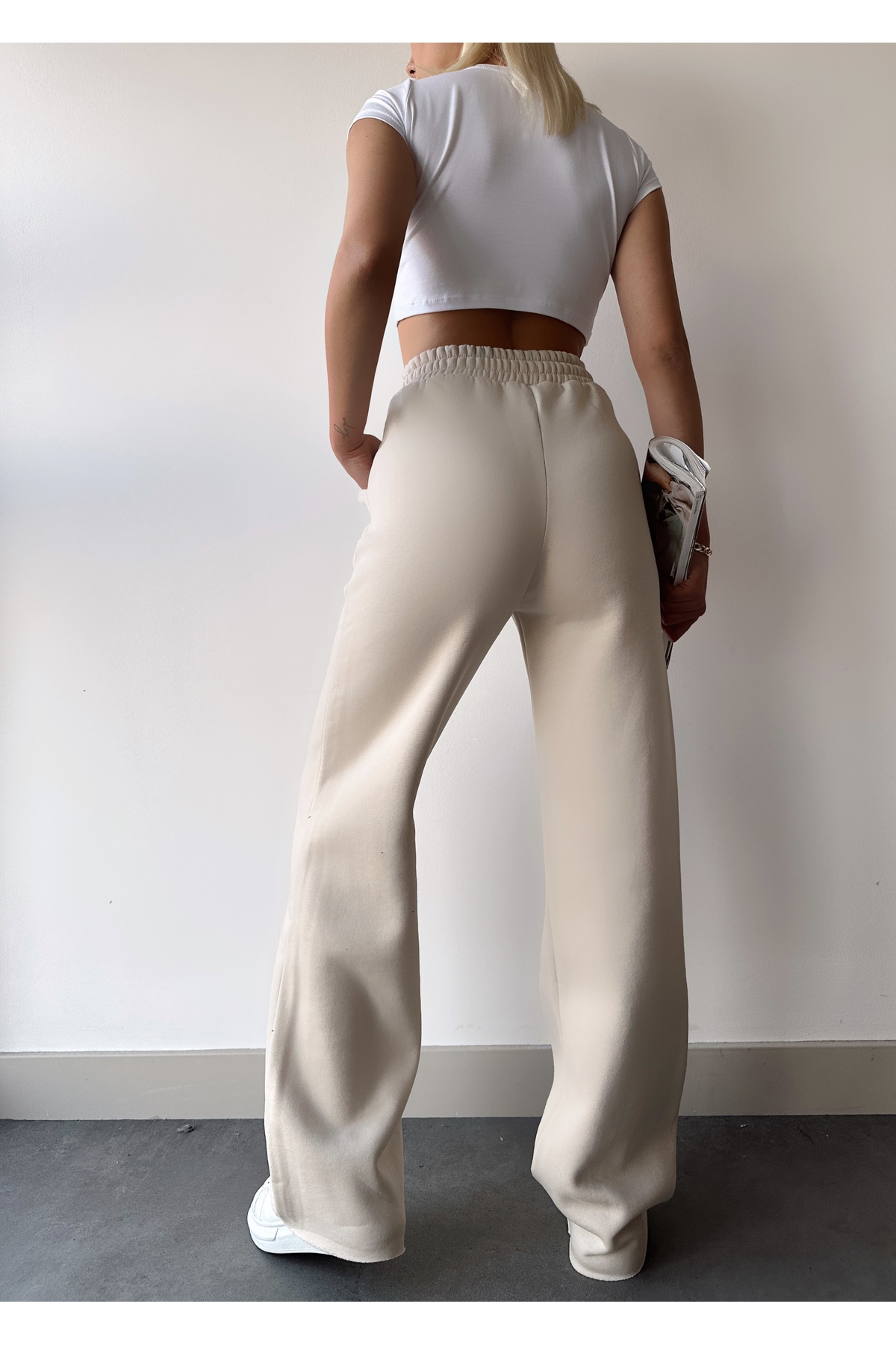 Kadın Taş İçi Polarlı Kışlık Bağcıklı Yüksek Bel Bol Paça Eşofman Altı