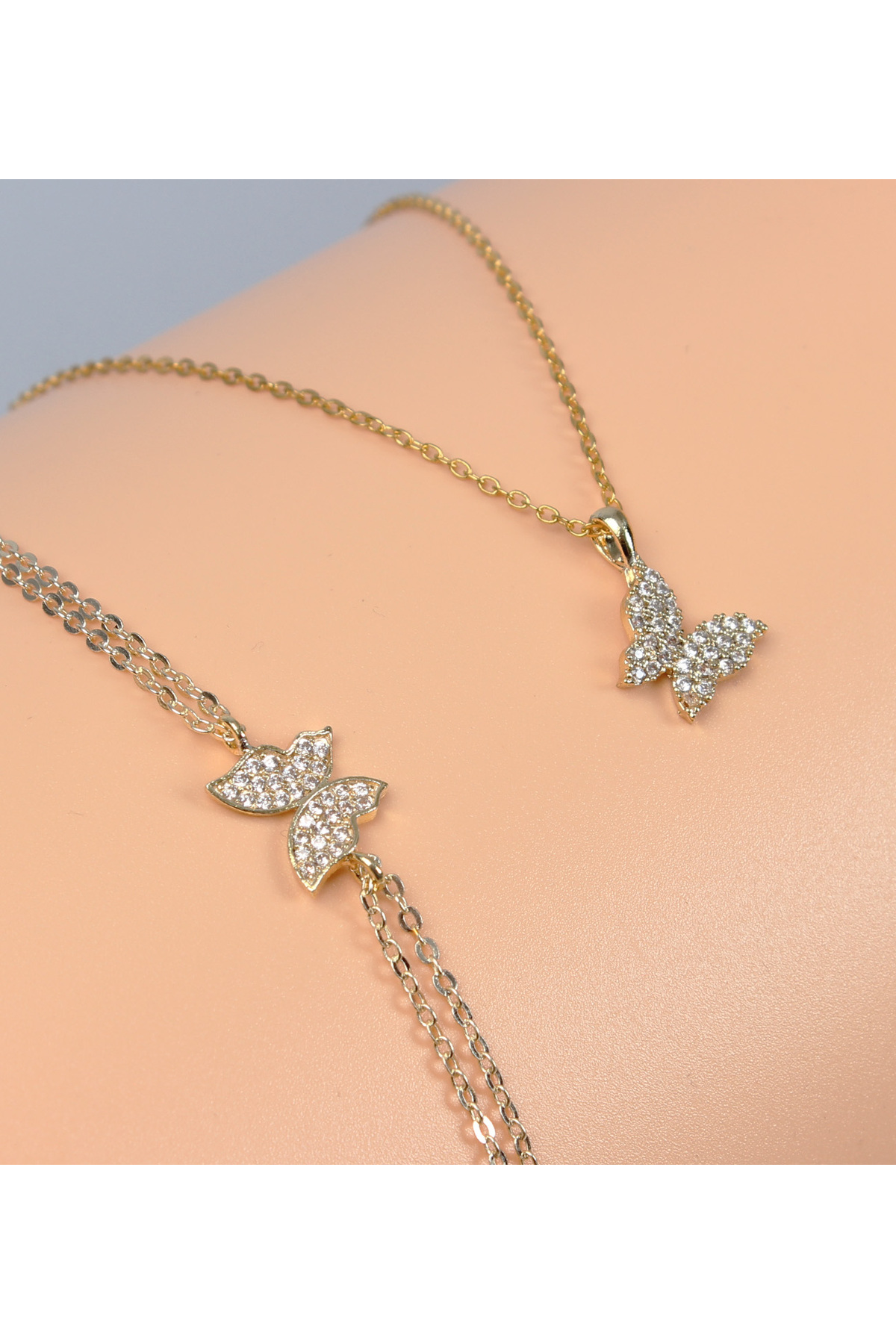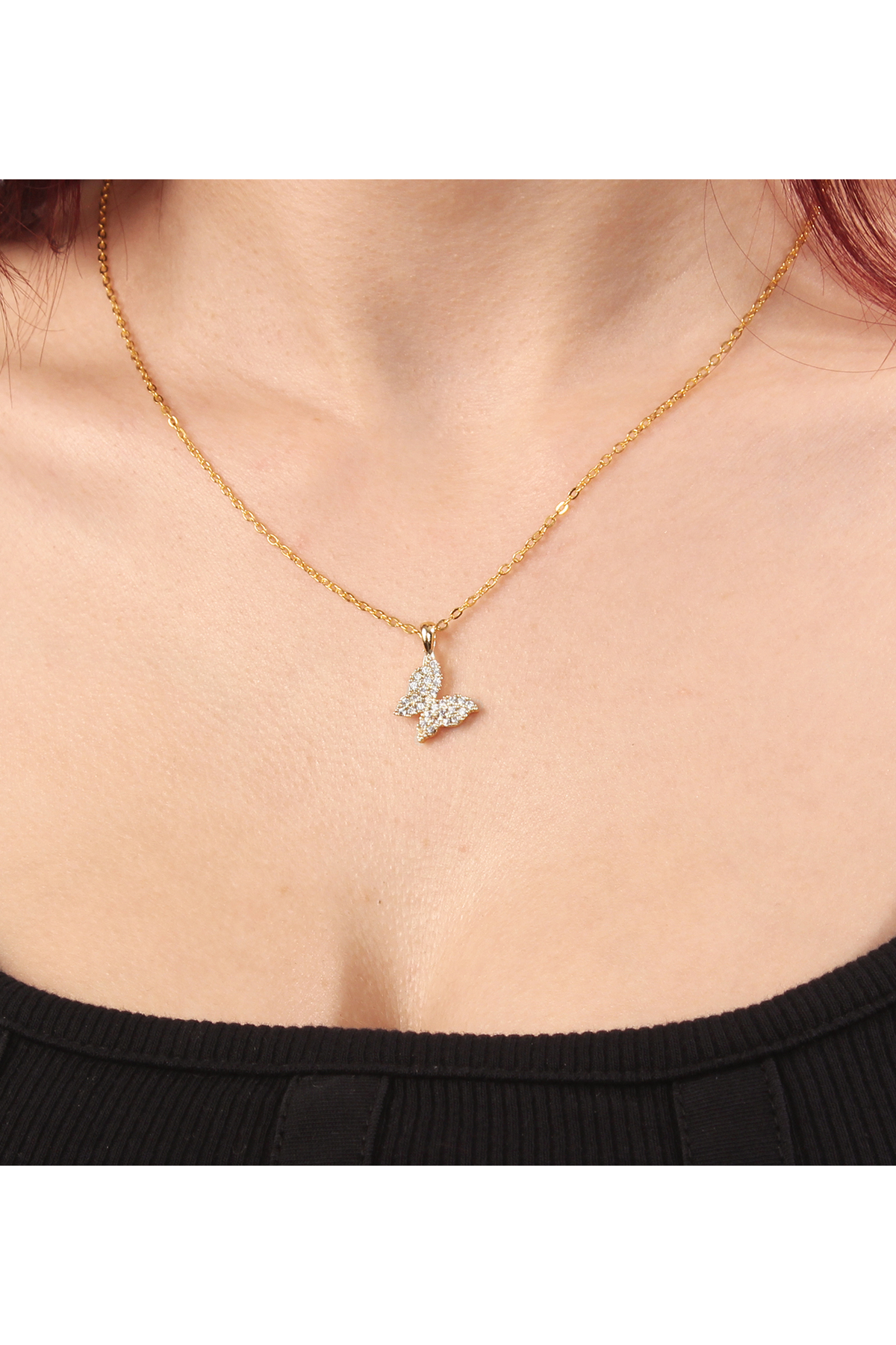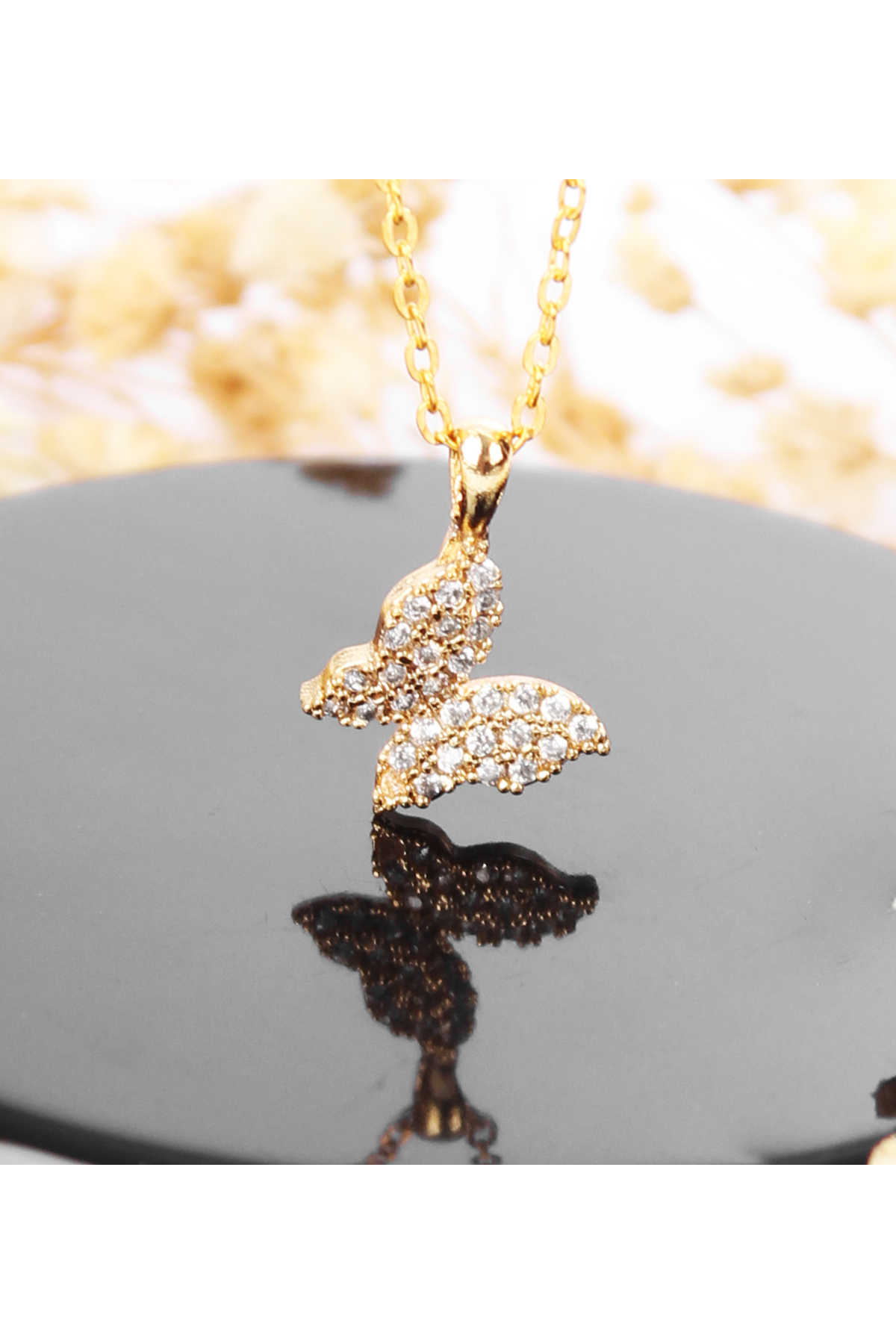Zarif tasarımıyla göz alıcı bir görünüm sunan kelebek kolye, her türlü özel gününüzde şıklığınızı tamamlar