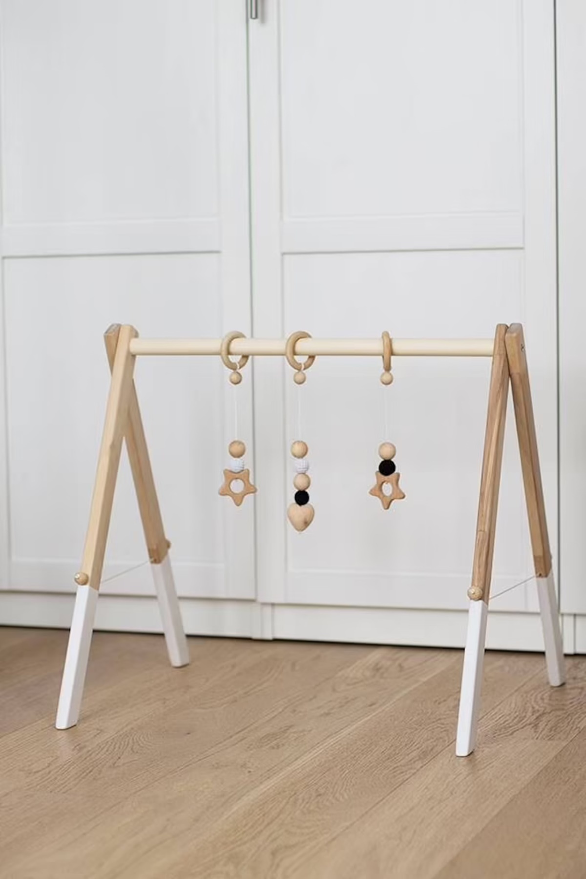 Bebeğinizin dünyayı keşfetmeye başladığı ilk aylar için mükemmel olan, %100 el yapımı güzel bir ahşap bebek spor salonu.