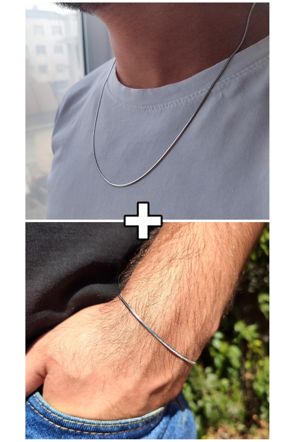 Gençlerin enerjisini ve stilini yansıtan, modern ve şık tasarımıyla dikkat çeken paslanmaz çelik unisex kolye ve bileklik seti