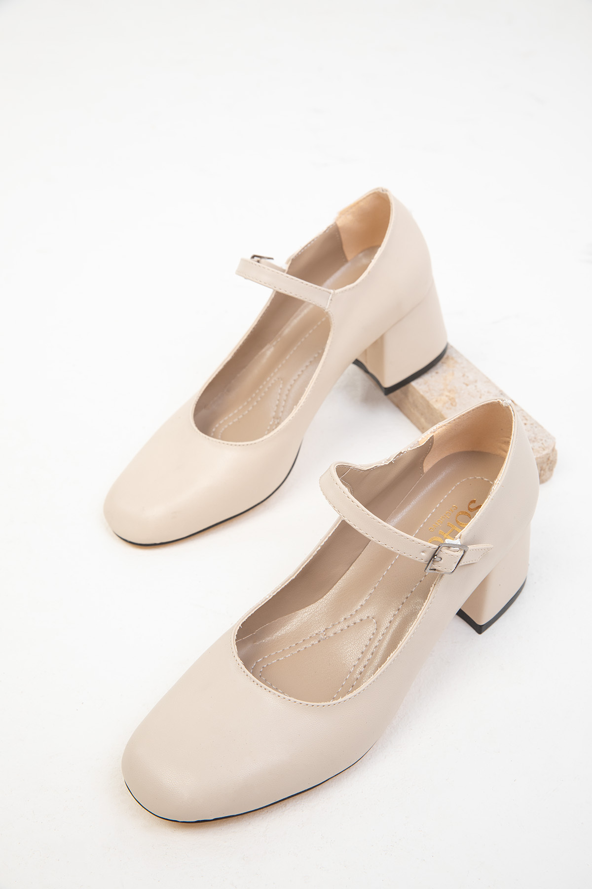 Kalın topuklu yapısı sayesinde dengeli bir duruş sağlar ve gün boyu rahatlık sunar