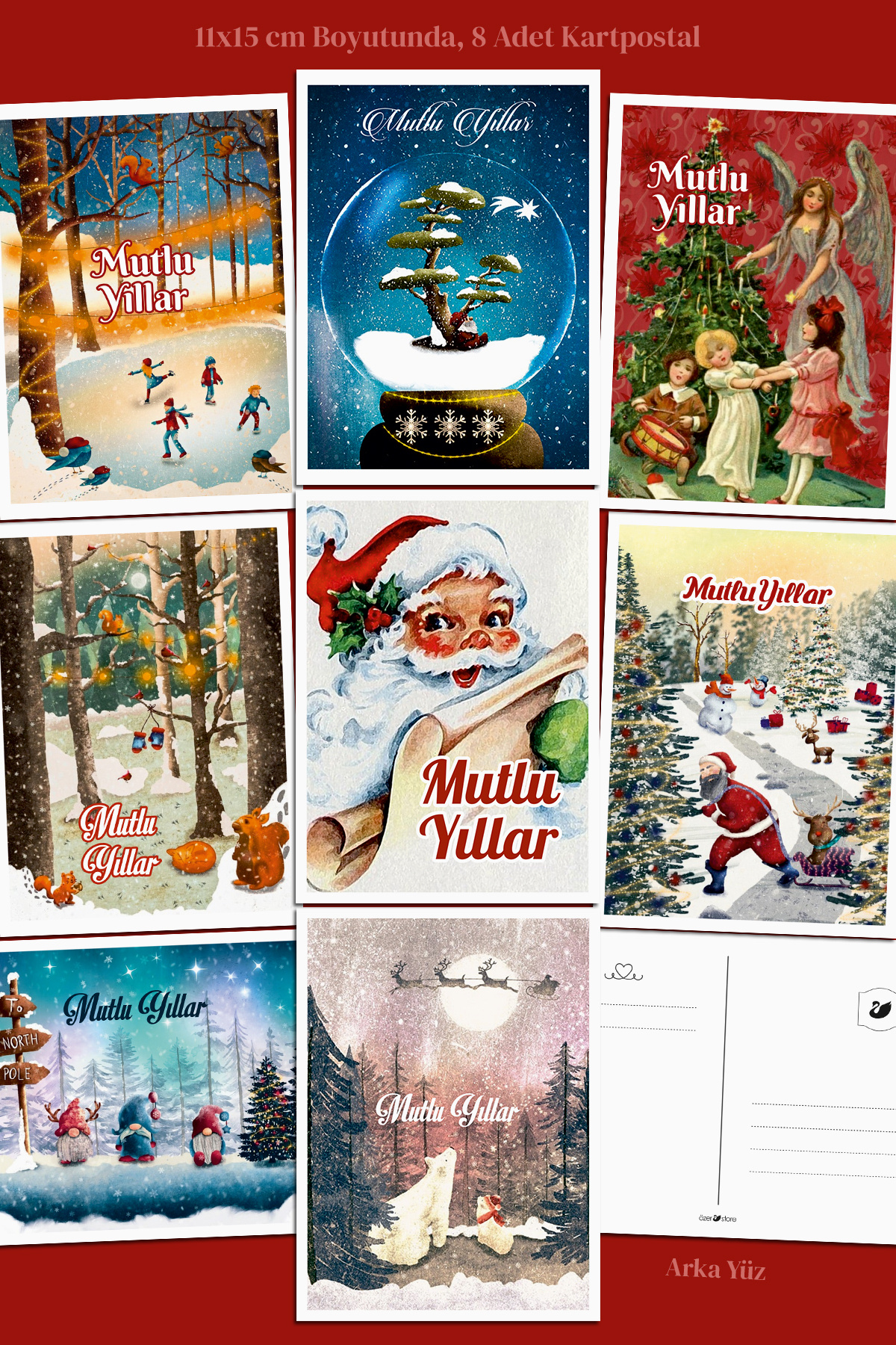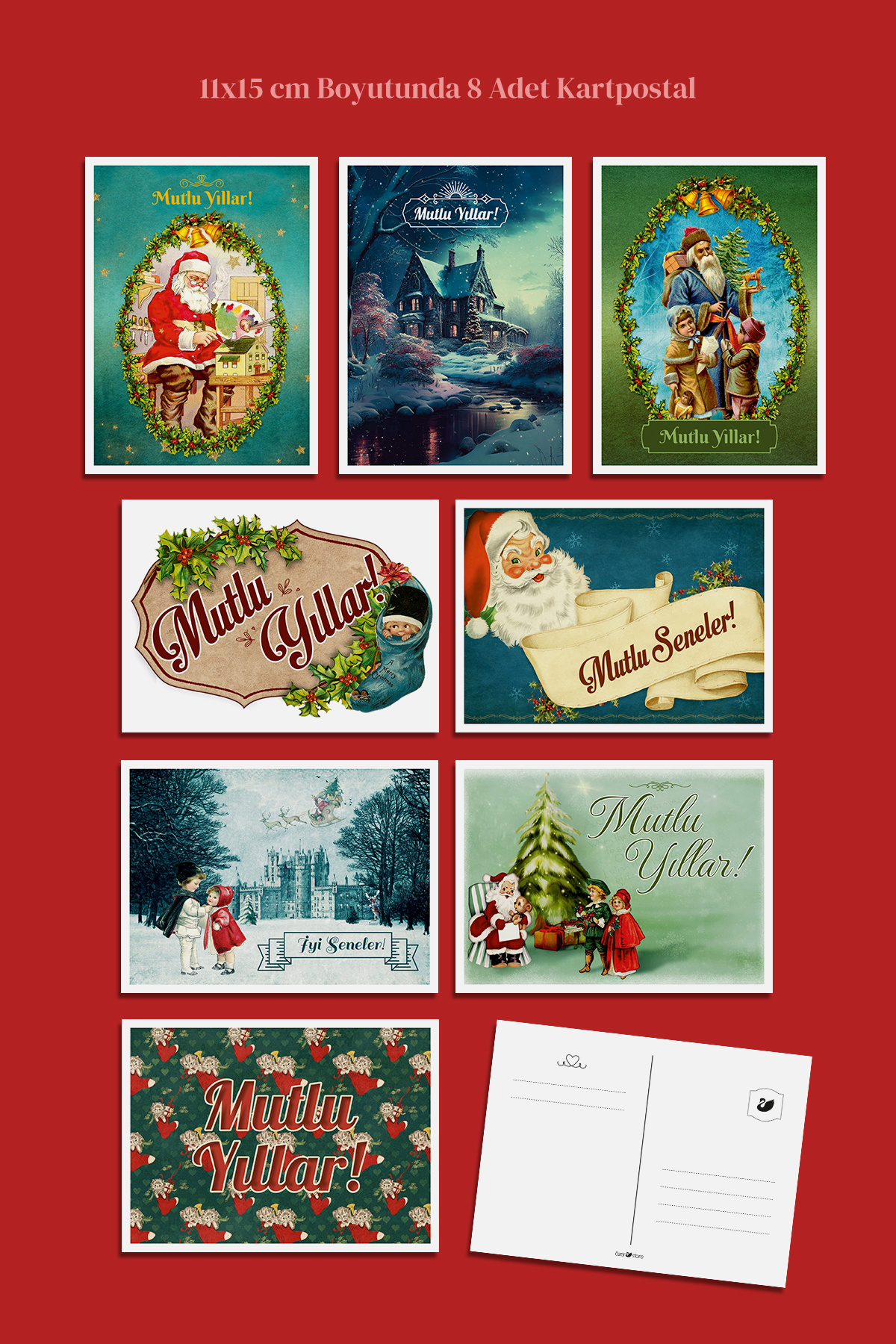 8 Adet Yeni Yıl Yılbaşı Noel Baba Kış Temalı Kartpostal Seti Mesaj Kartı