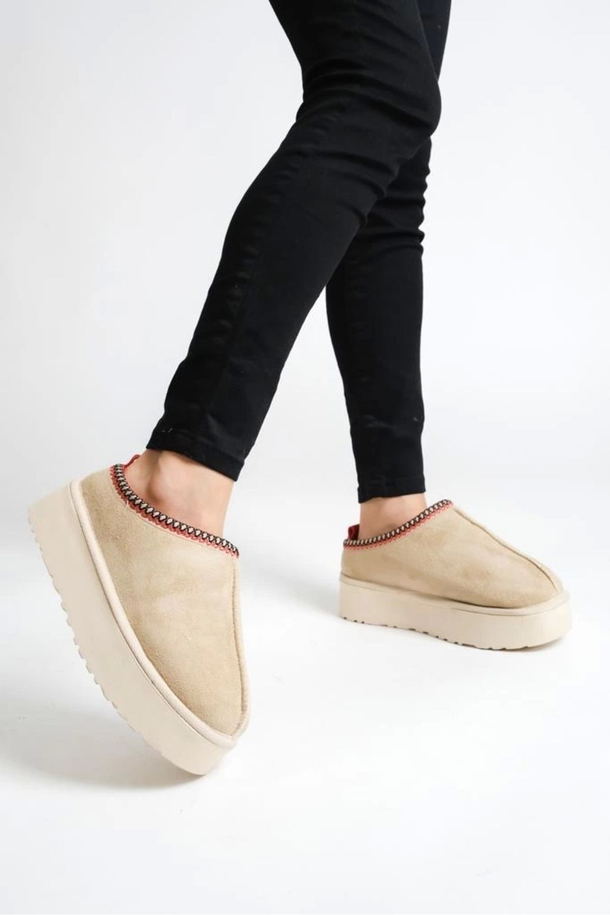 Tazz Bej Süet Yarım Bot Içi Tüylü Düz Taban Kadın Ayakkabı