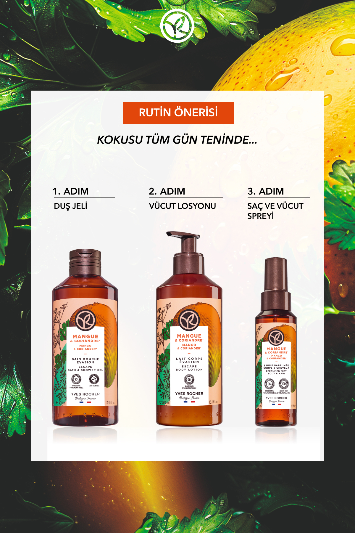 Ciltteki yumuşaklığı ve kokuyu daha da kalıcı hale getirmek için, Vücut Losyonu - Nemlendirici Besleyici Canlandırıcı Mango Kişniş -Vegan ile birlikte kullanın.