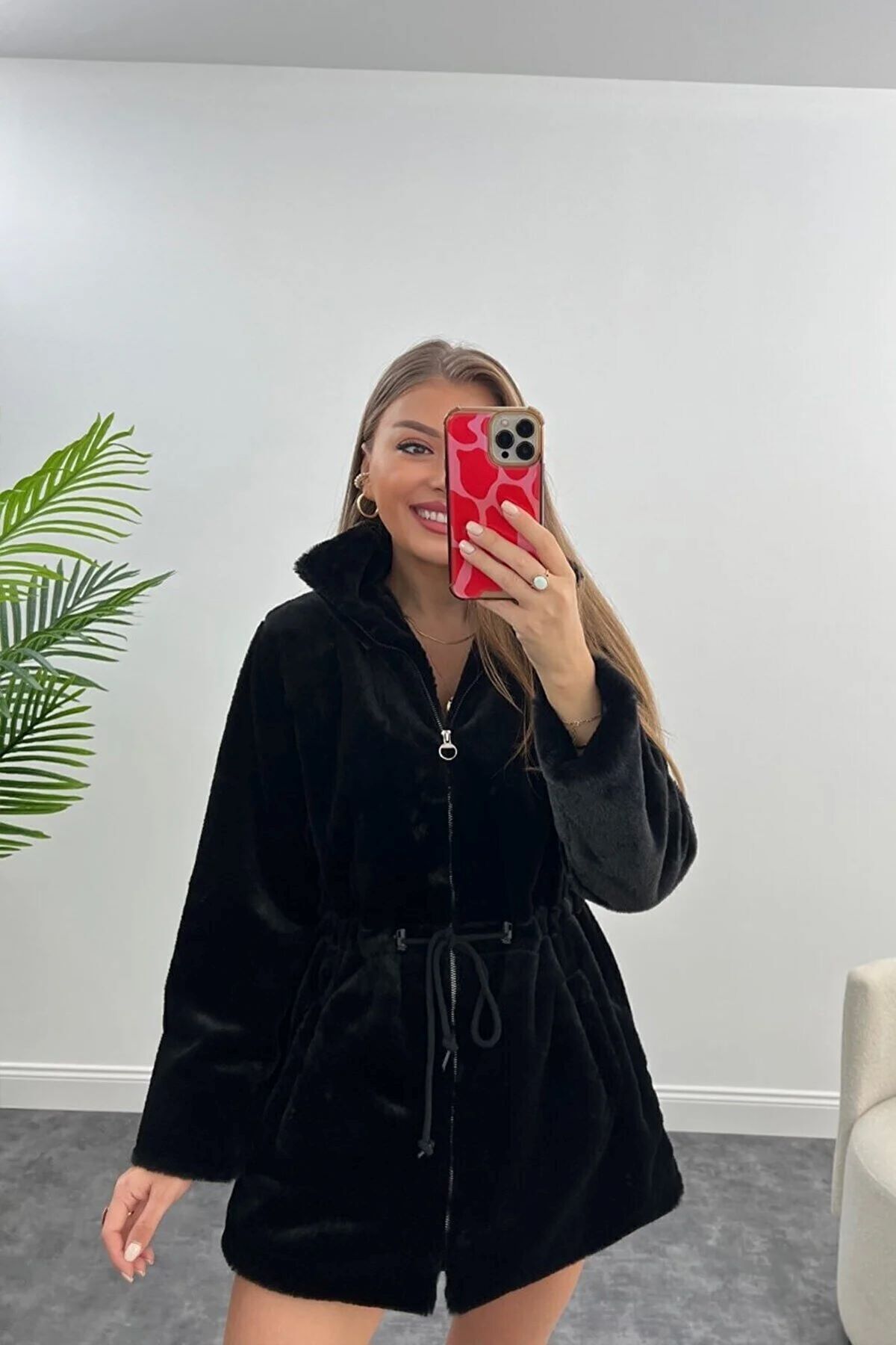 Peluş dokuma tipi, kabanın hem şık hem de rahat olmasını sağlar
