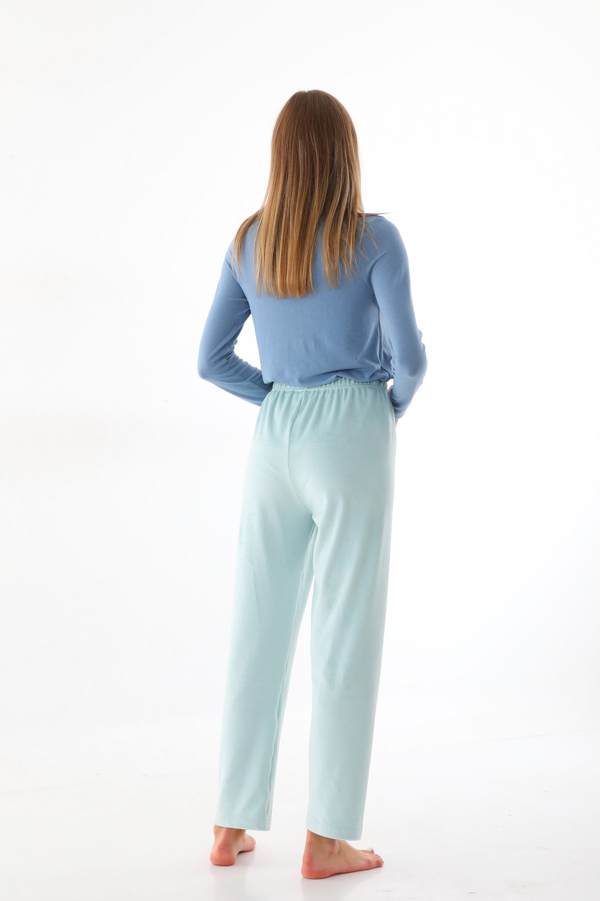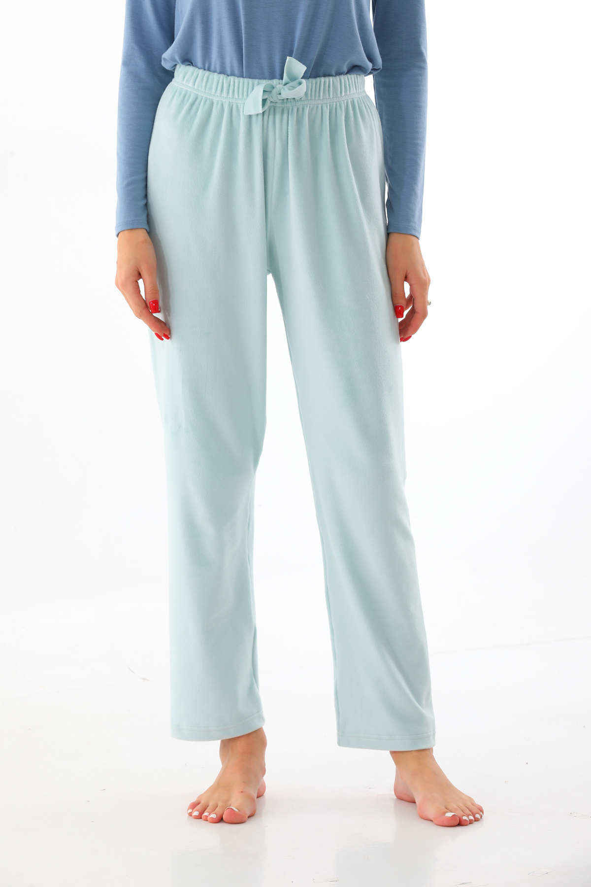 - Pastel yeşil rengiyle göz alıcı bir görünüm sunan bu pijama altı, evde şıklığınızı korumanız için idealdir.