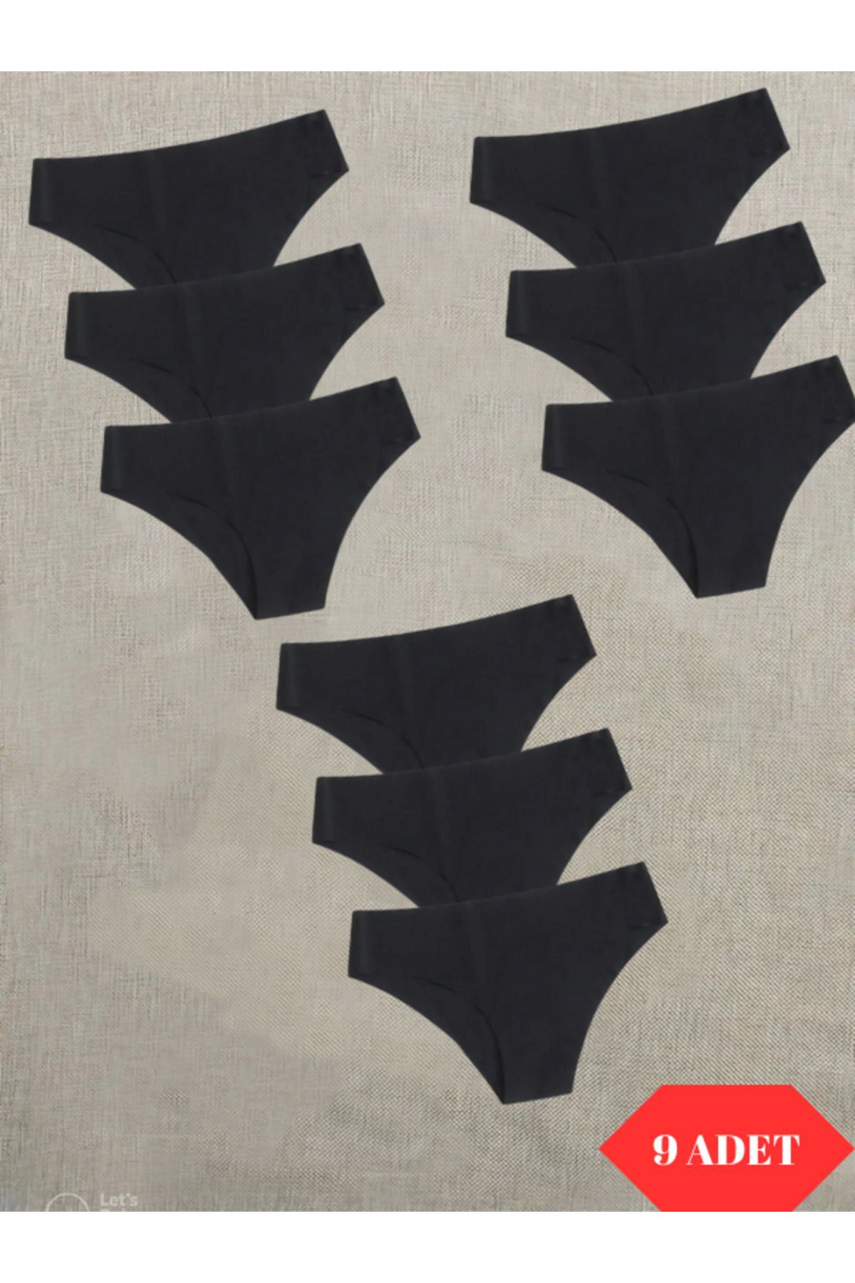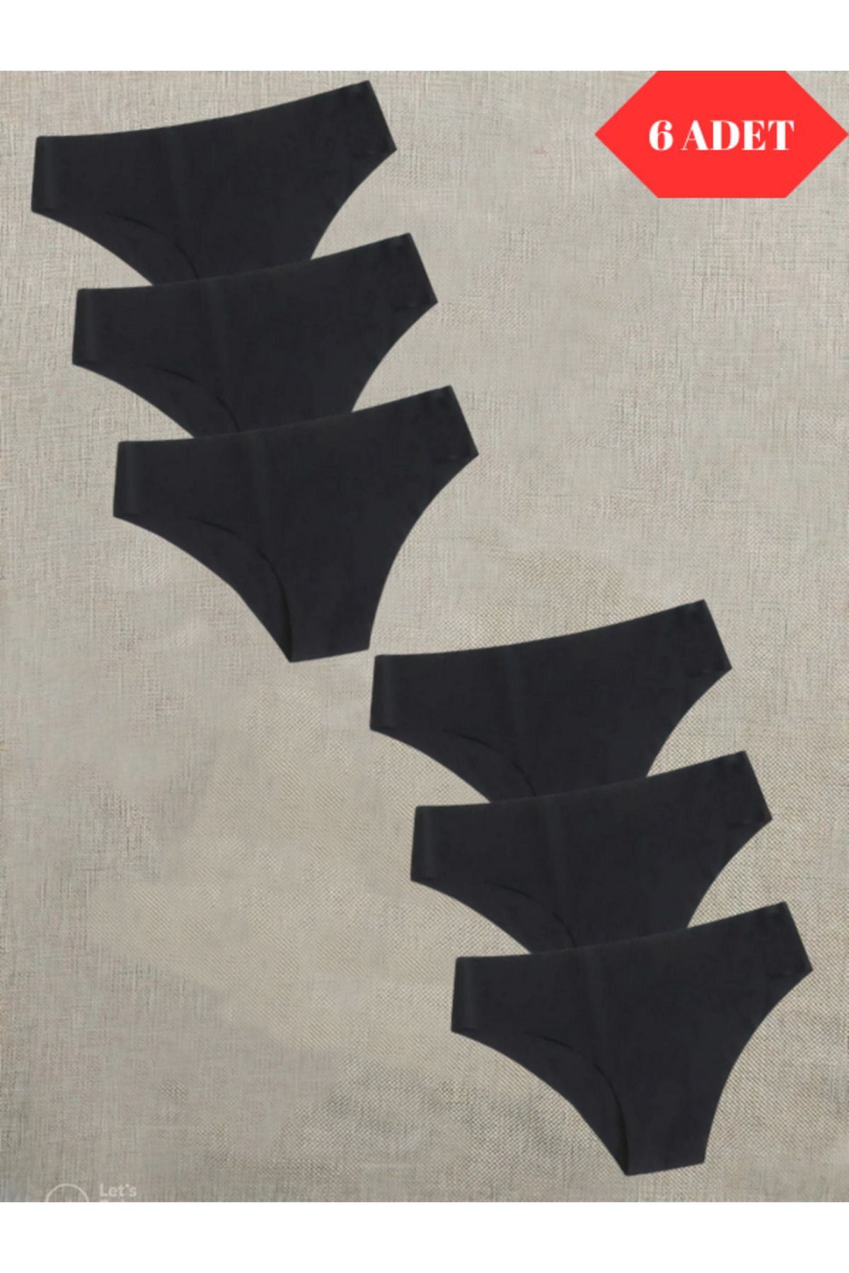 Kadın Siyah Ten Paket Dikişsiz Lazer Kesim Iz Yapmaz Likralı Bikini Slip Külot