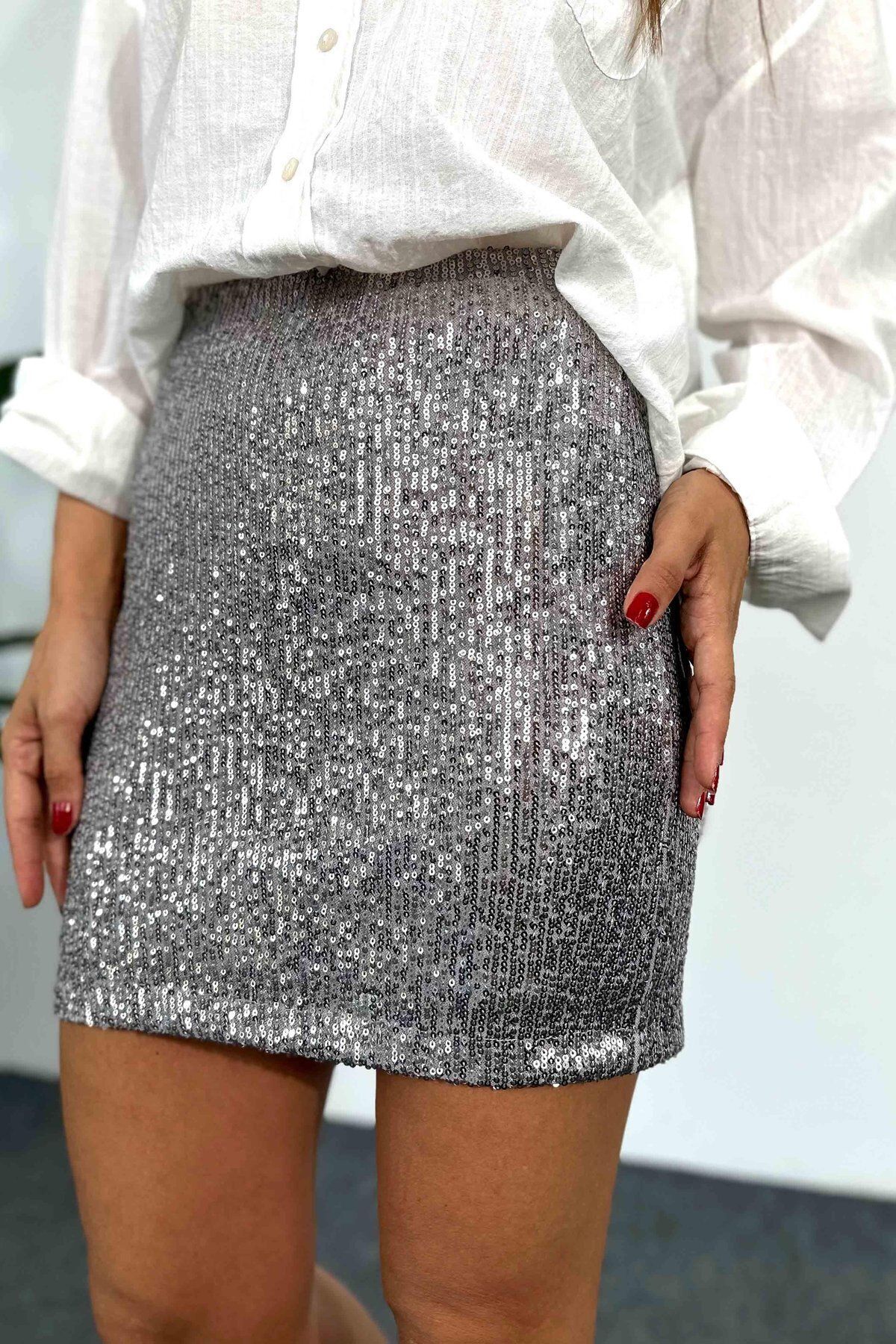 - Parlak payet detayları ile göz alıcı bir parlaklık kazandırırken, düz kesimi sayesinde zarif bir siluet oluşturur.