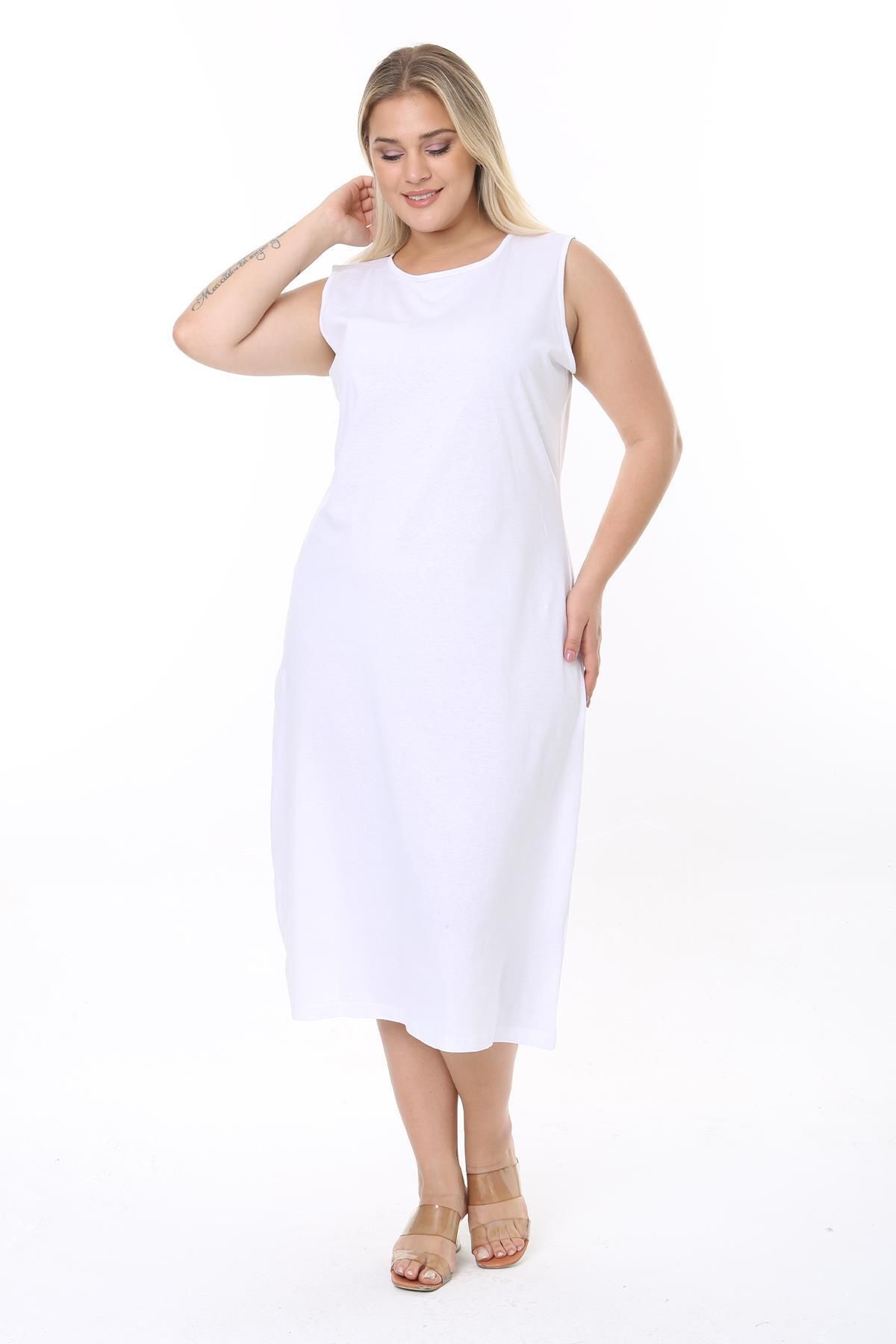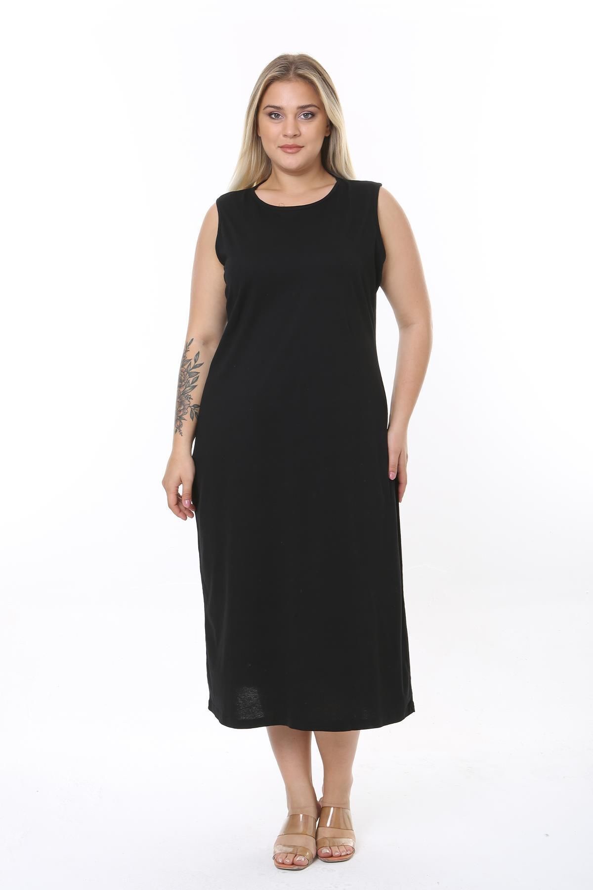 Gündüzden geceye her ortamda rahatlıkla tercih edilebilen, şık ve sade tasarımıyla dikkat çeken büyük beden uzun kolsuz elbise astarı içlik jüpon kombinezon