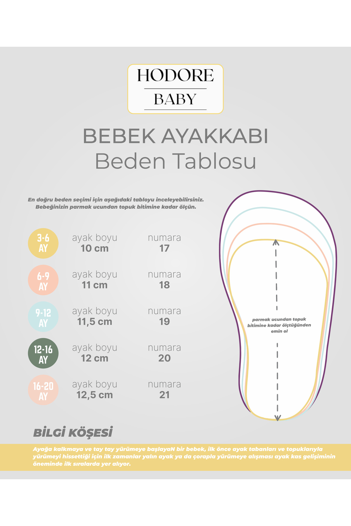 Düz topuklu yapısı ile bebeğinizin ilk adımlarında rahatlık ve dengeyi destekler