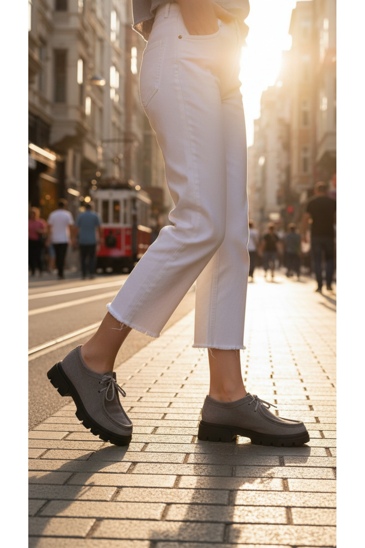 Judi bej renk, kalın tabanlı, bağcıklı oxford ayakkabı
