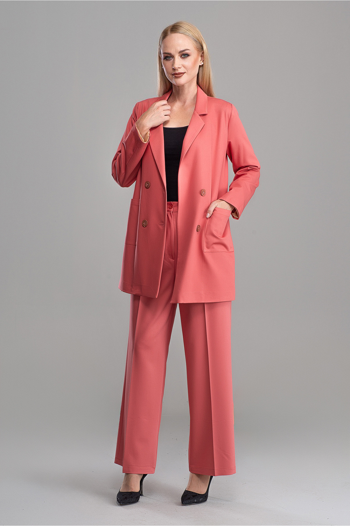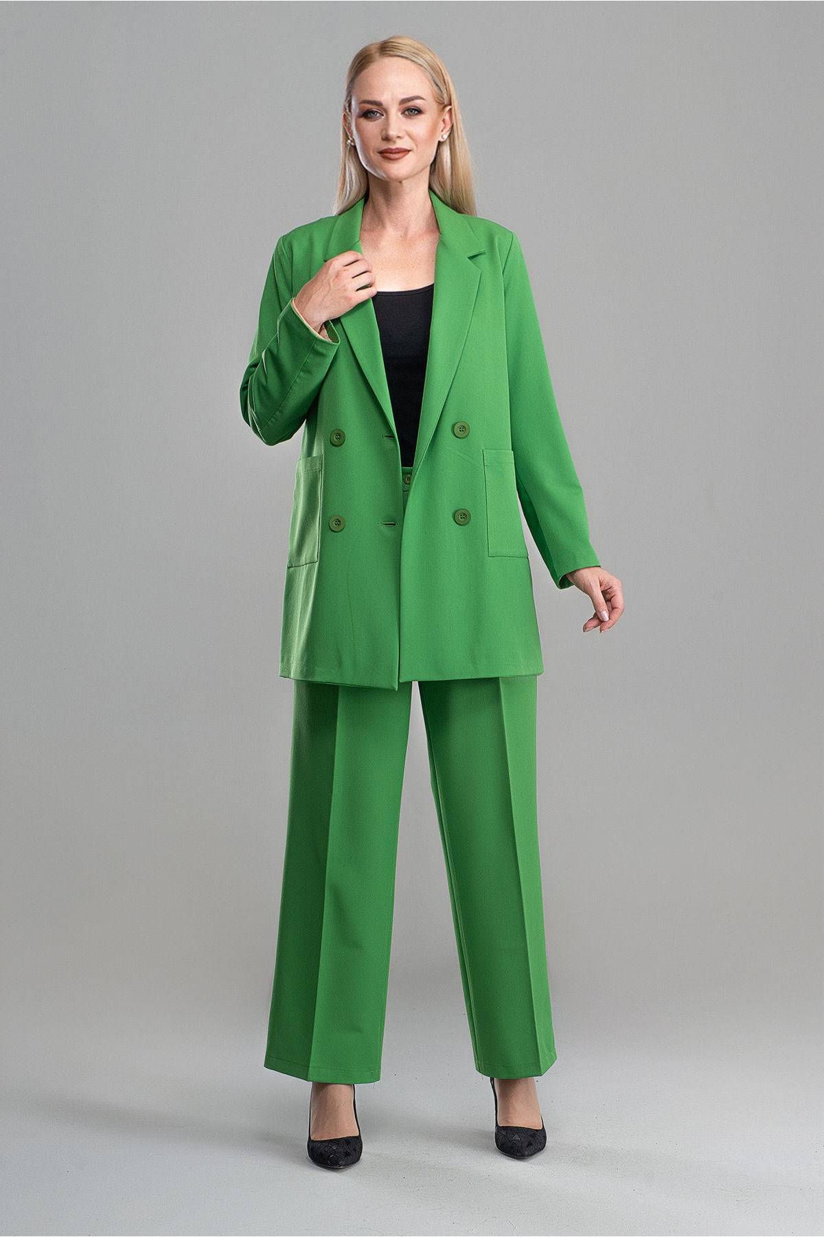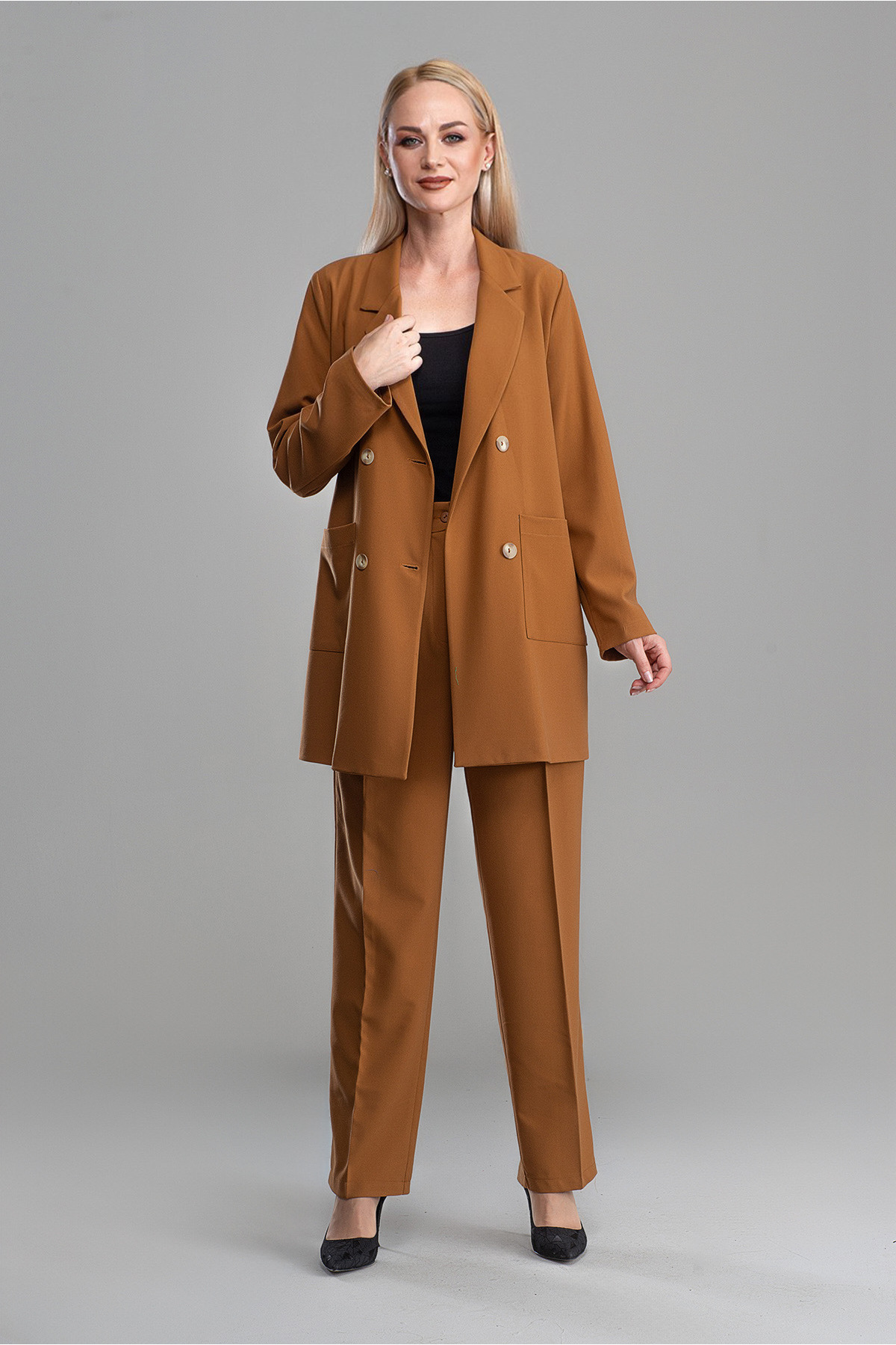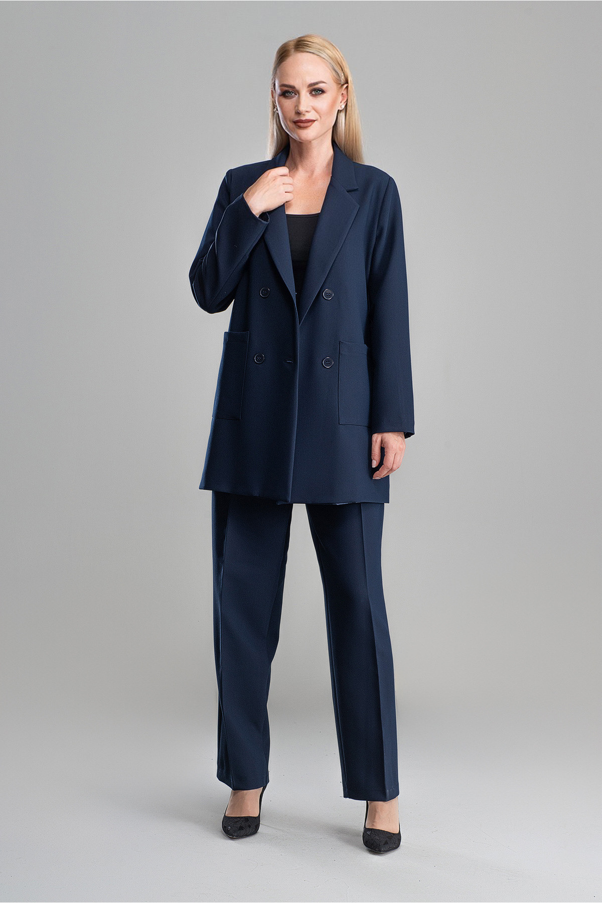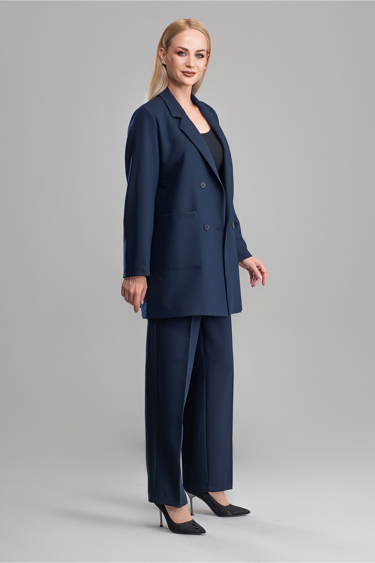 Pantolon Boy : 105cm Ceket boyu 80 cm Kumaş bilgisi: %80 Pamuk, %20 Polyester Astarlı ürün Beden: 38, Göğüs: 110 cm, Bel: 106 cm, Basen: 114 cm,