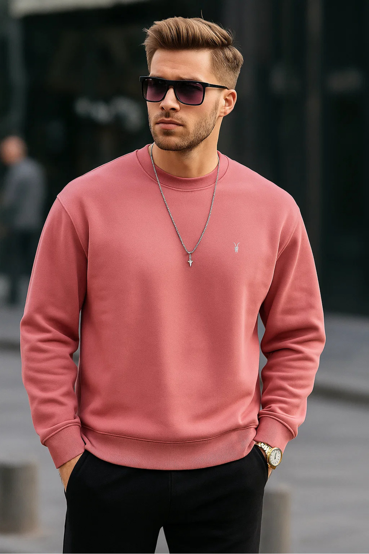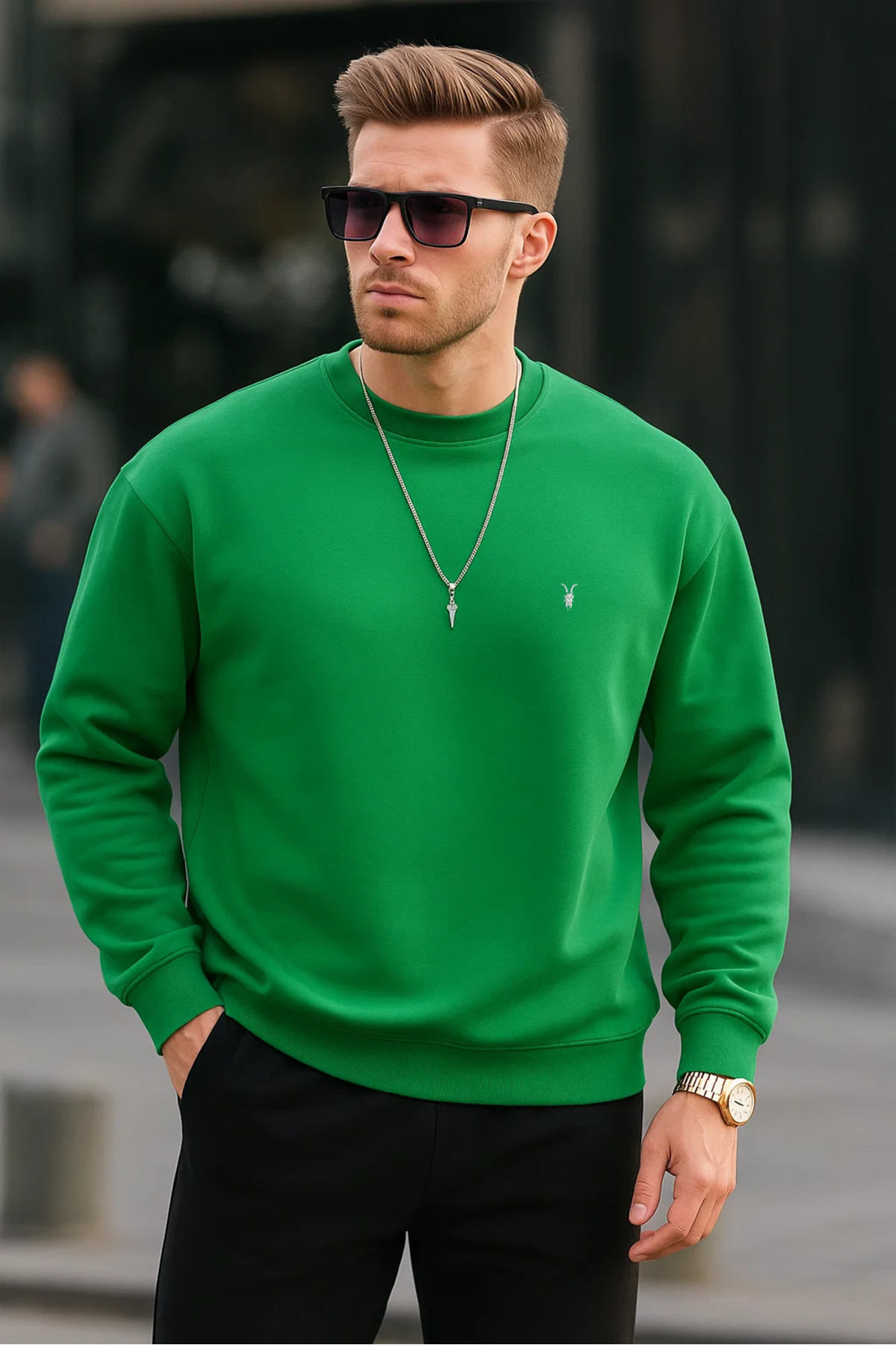 Erkek Basic Bisiklet Yaka Relaxed Regular Rahat Salaş Pamuklu Günlük Trend Bol Oversize Sweatshirt Bu erkek sweatshirt, günlük kullanım için tasarlanmış, hem konforlu hem de şık bir parçadır.