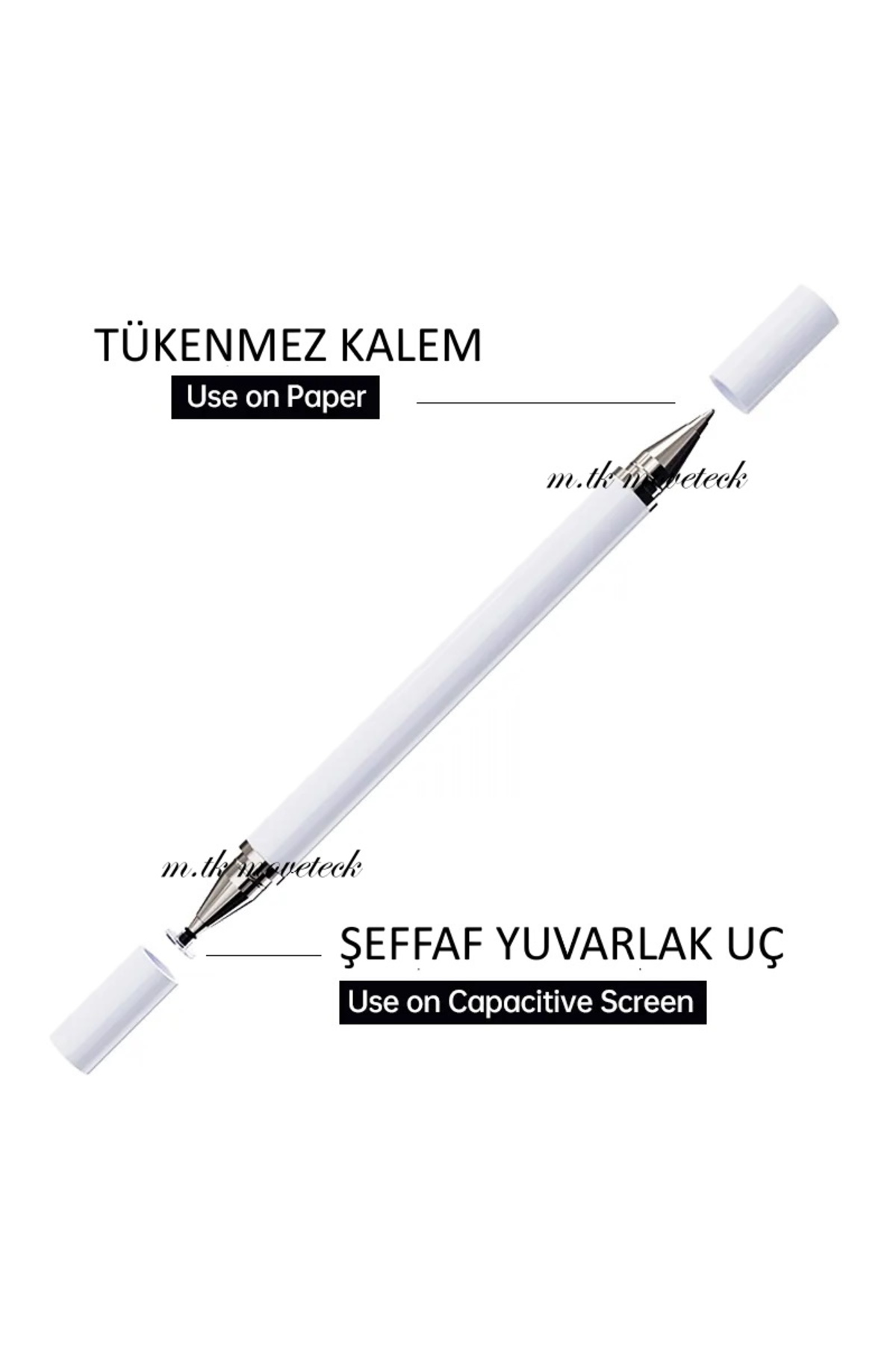 Özellikler : Tüm tablet ve telefonlarla uyumludur. Şarj veya kurulum gerektirmez 2in1 yapı. Bir ucu normal tükenmez kalemdir. Diğer ucu disk uçlu kapasitif dokunmatik kalemdir. Disk ucu sayesinde her açıdan kolay çizim yapabilir yazaı yazabilirsiniz. Gerçek bir kalem gibi hissedebilme ve yazabilme özelliği ergonomik dizayn özel bir yazılım gerektirmez ve ios ve android işletim sistemindeki dokunmatik arayüz ile çalışır uçların kapakları vidalı sisteme sahiptir. Bu sayede düşme ve kaybolma riski azaltılmış olur.