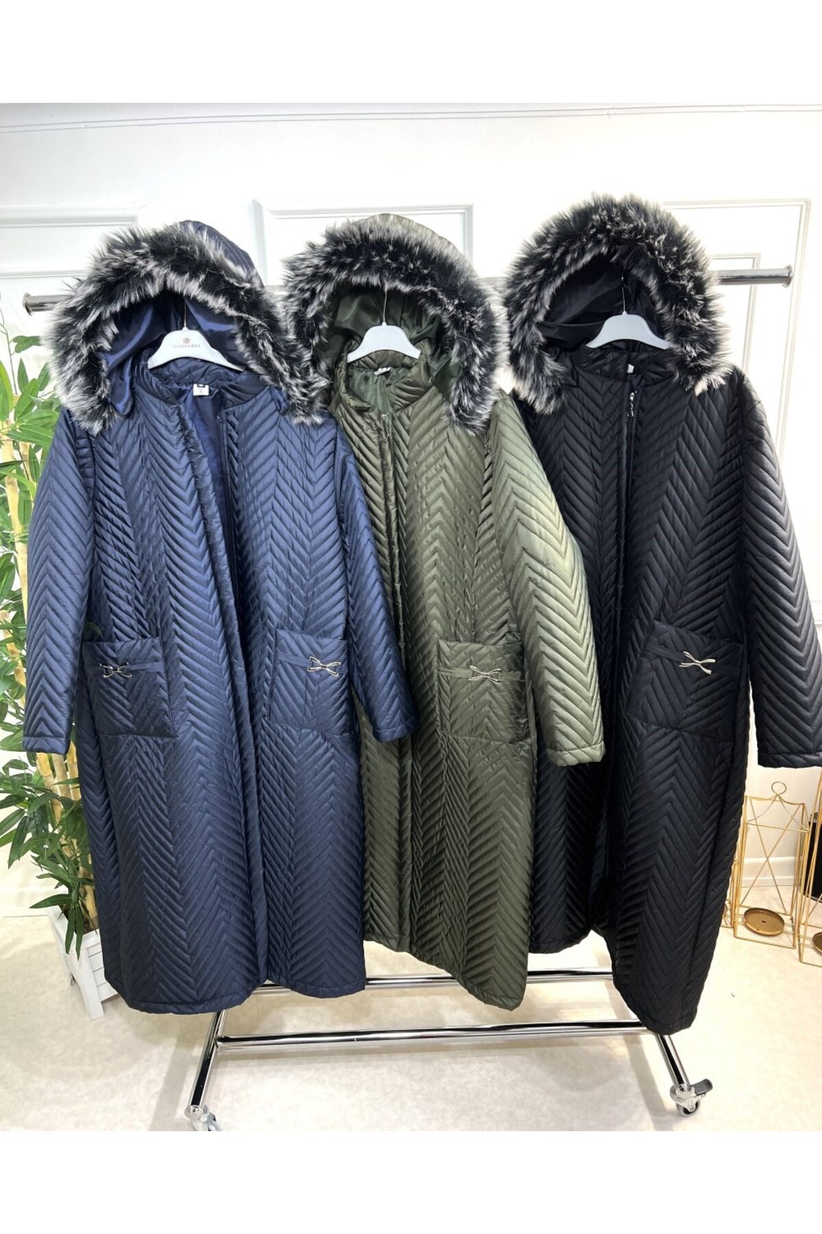 Büyük beden koleksiyonuna özel tasarlanmış, rahatlık ve şıklığı bir arada sunan lacivert renkli Zigana kapitone mont.