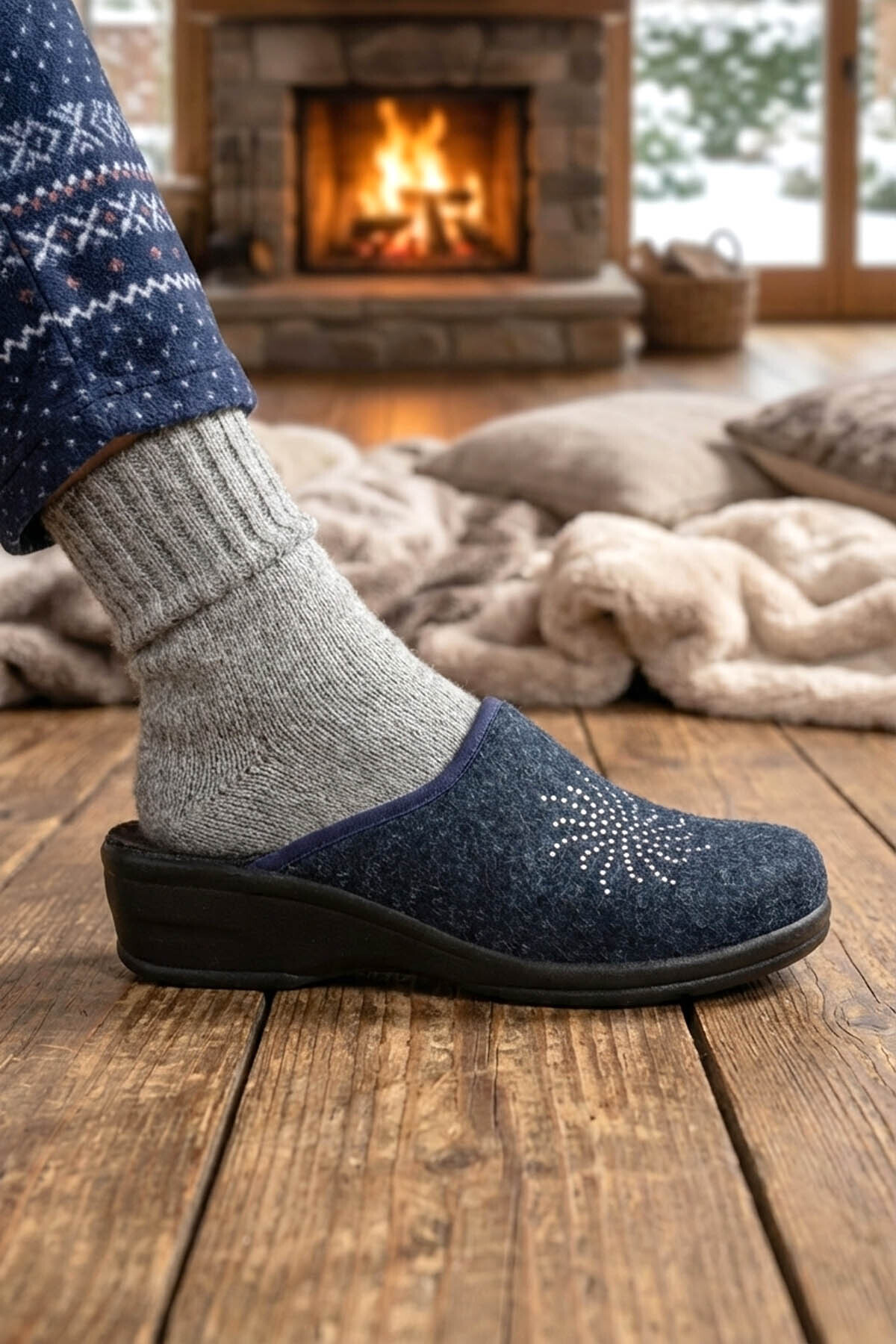 Gezer Kadın Kışlık Ev Bahçe Yüksek Topuk Terlik Topuk Boyu: 4024 Topuk Tipi: 2621 Renk: Lacivert Cinsiyet: 4295 Yaş Grubu: 4293