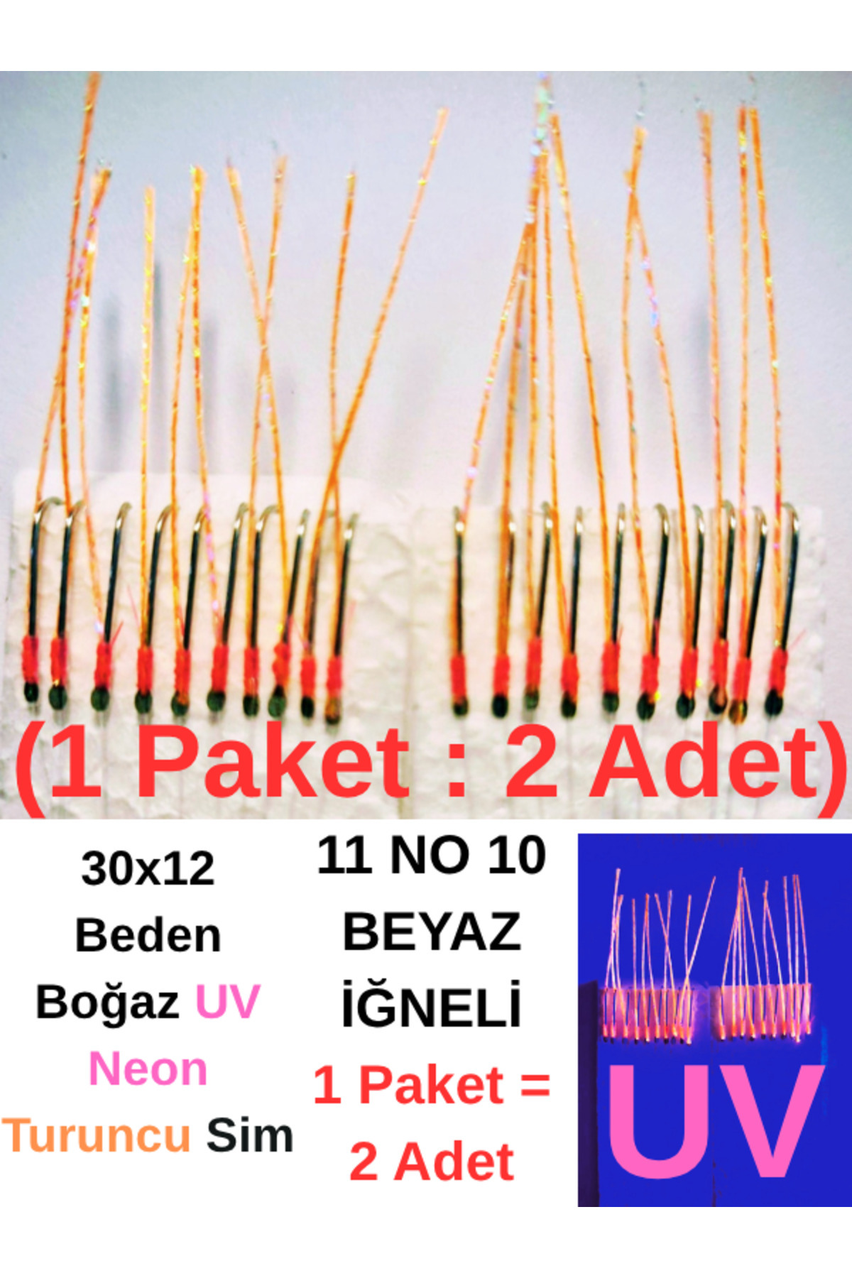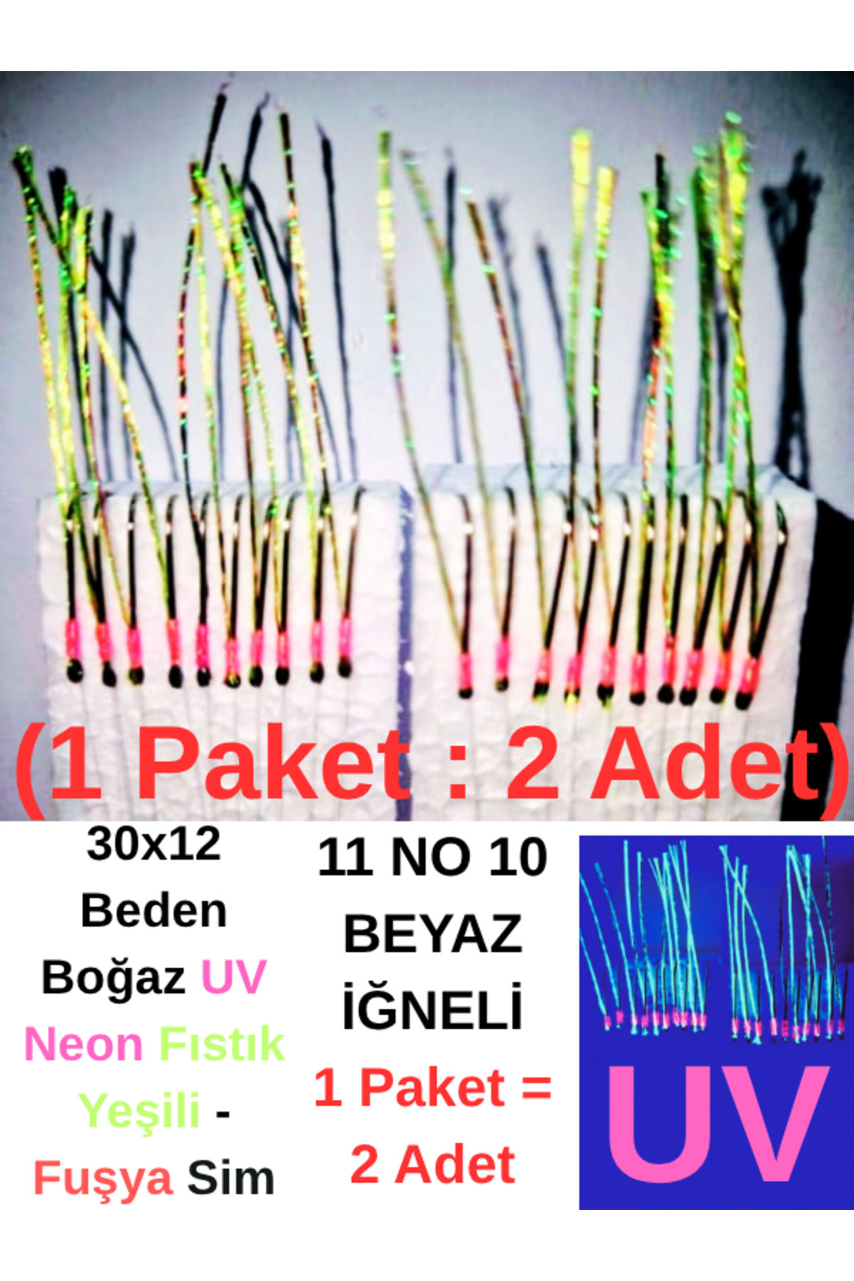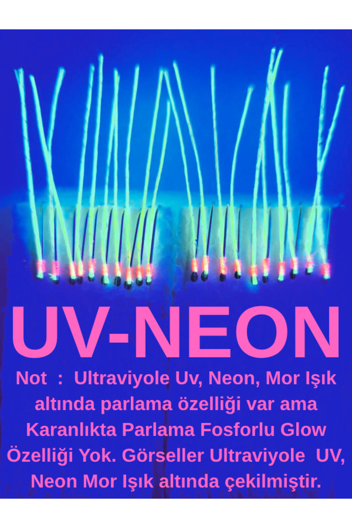 Uv ve neon organze ve sim kombini uygulanarak ve uv ve neon boyalıköstek misinası ile bağlanmıştır.