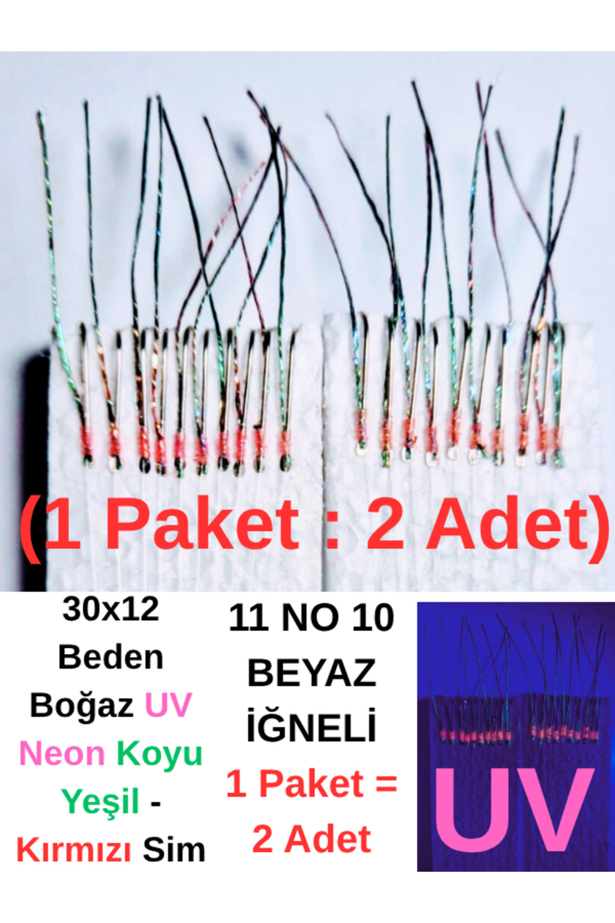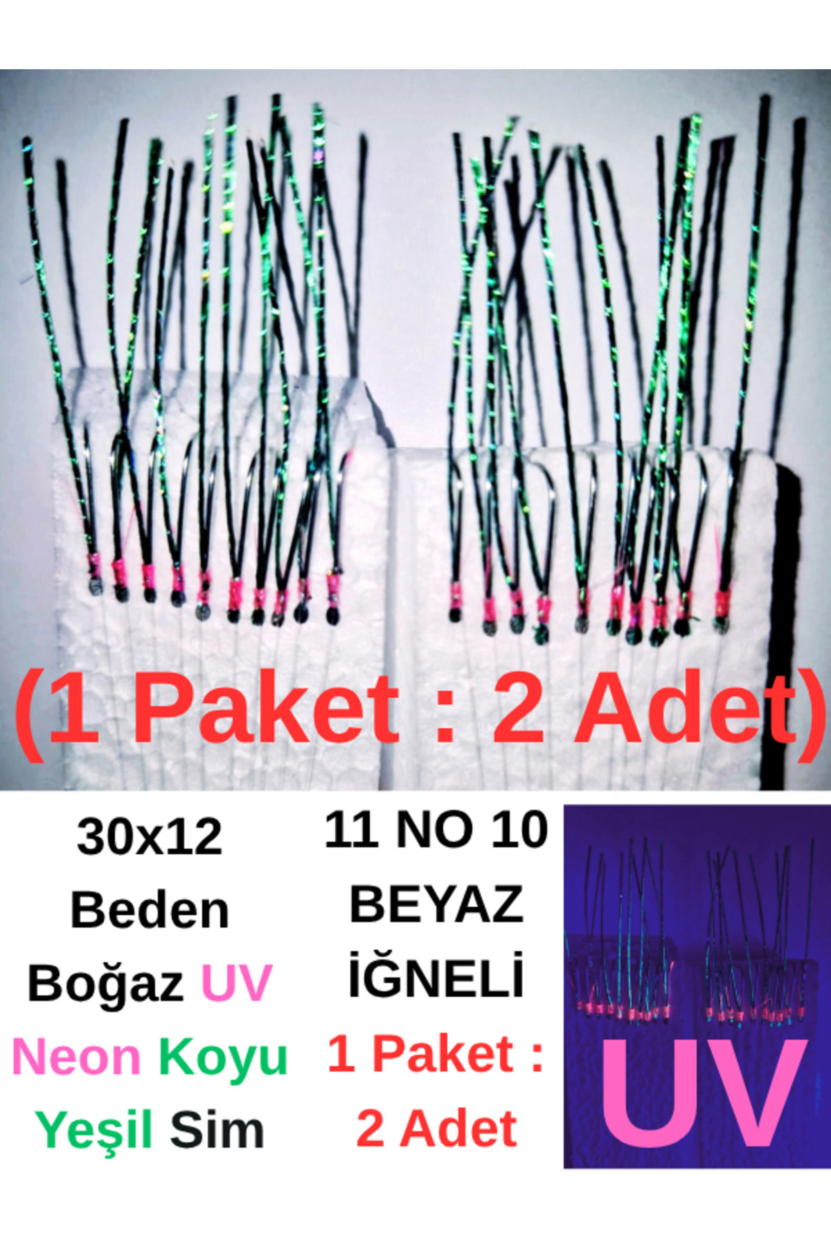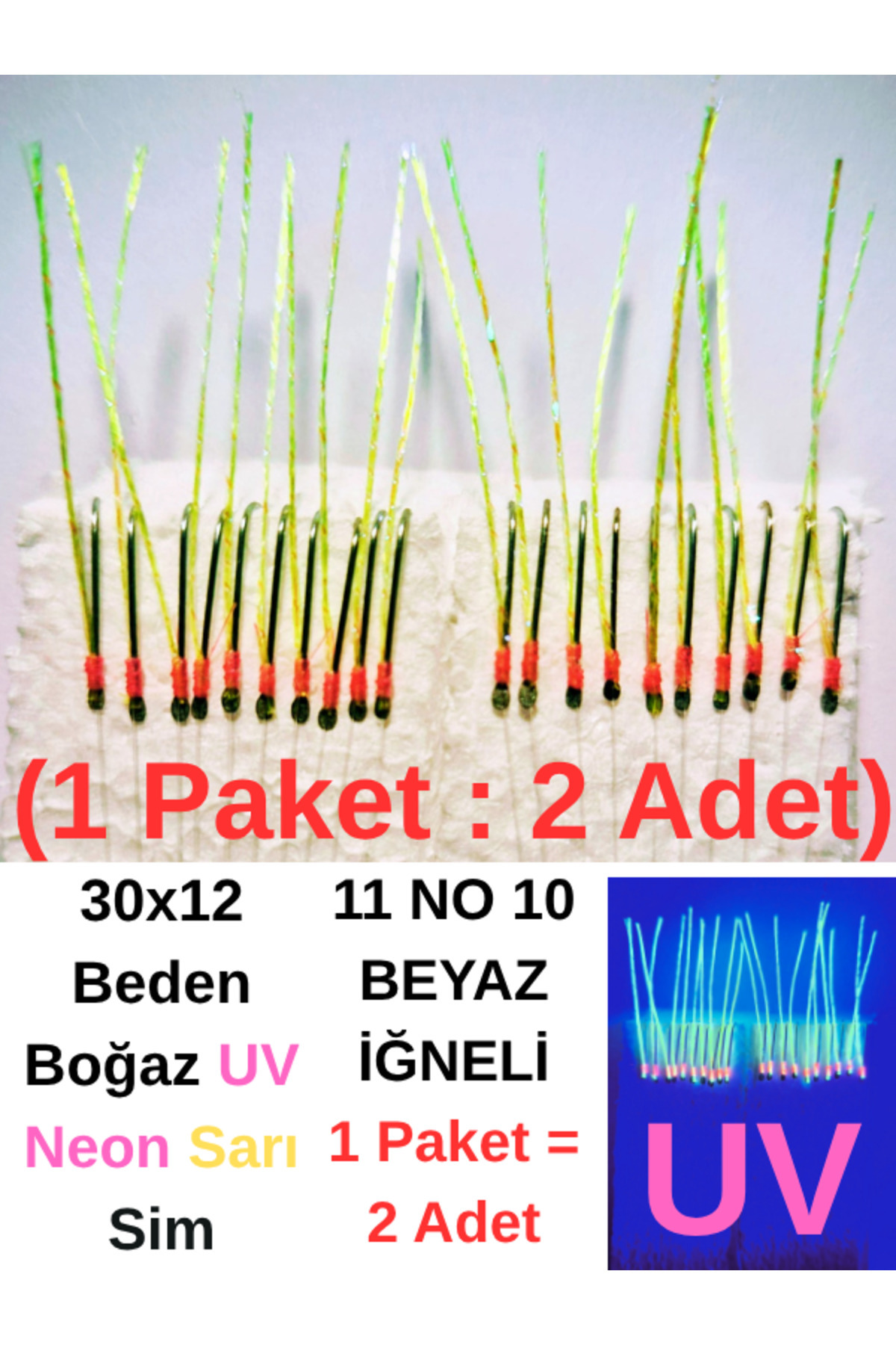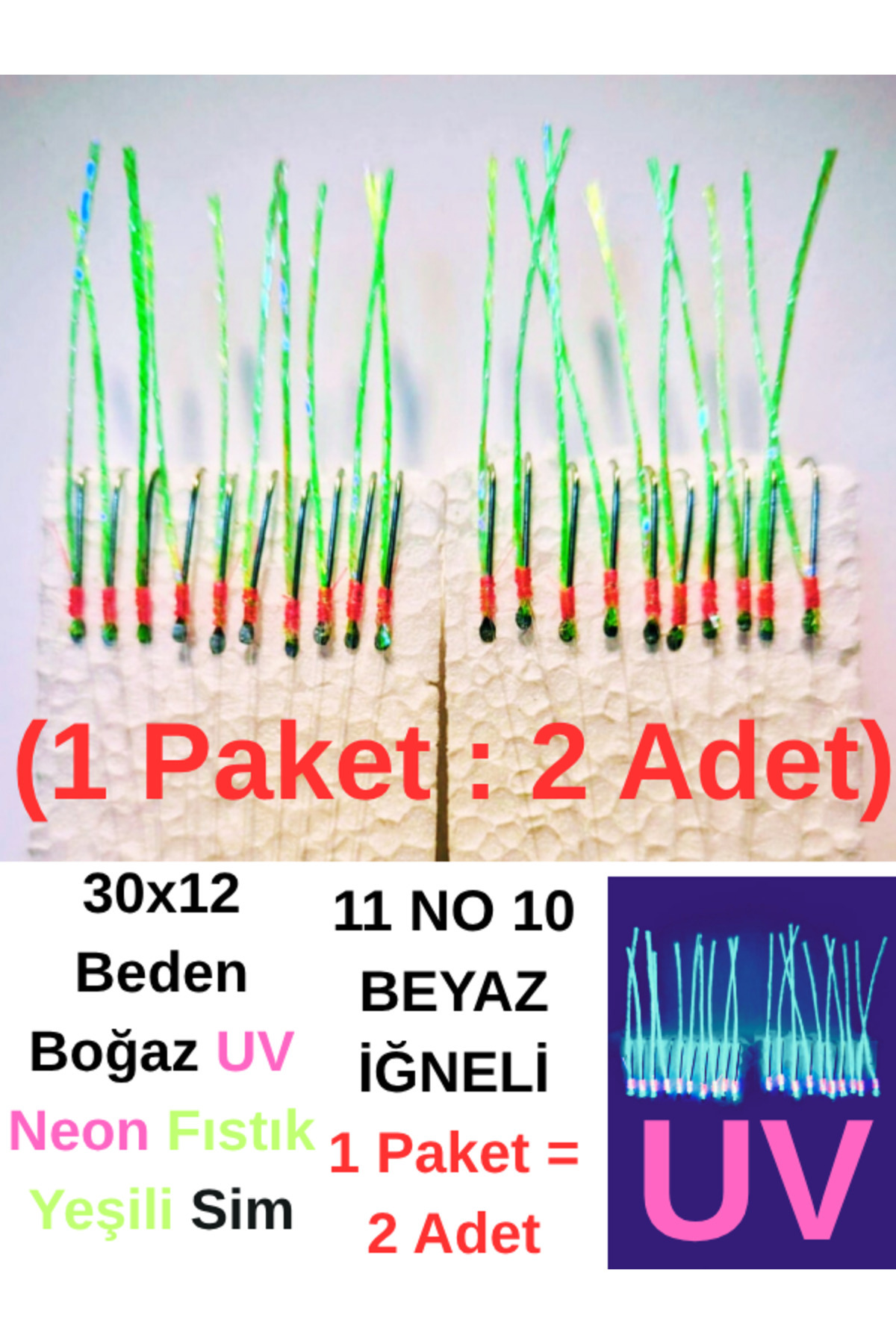 Uv ve neon organze ve sim kombini uygulanarak ve uv ve neon boyalıköstek misinası ile bağlanmıştır.