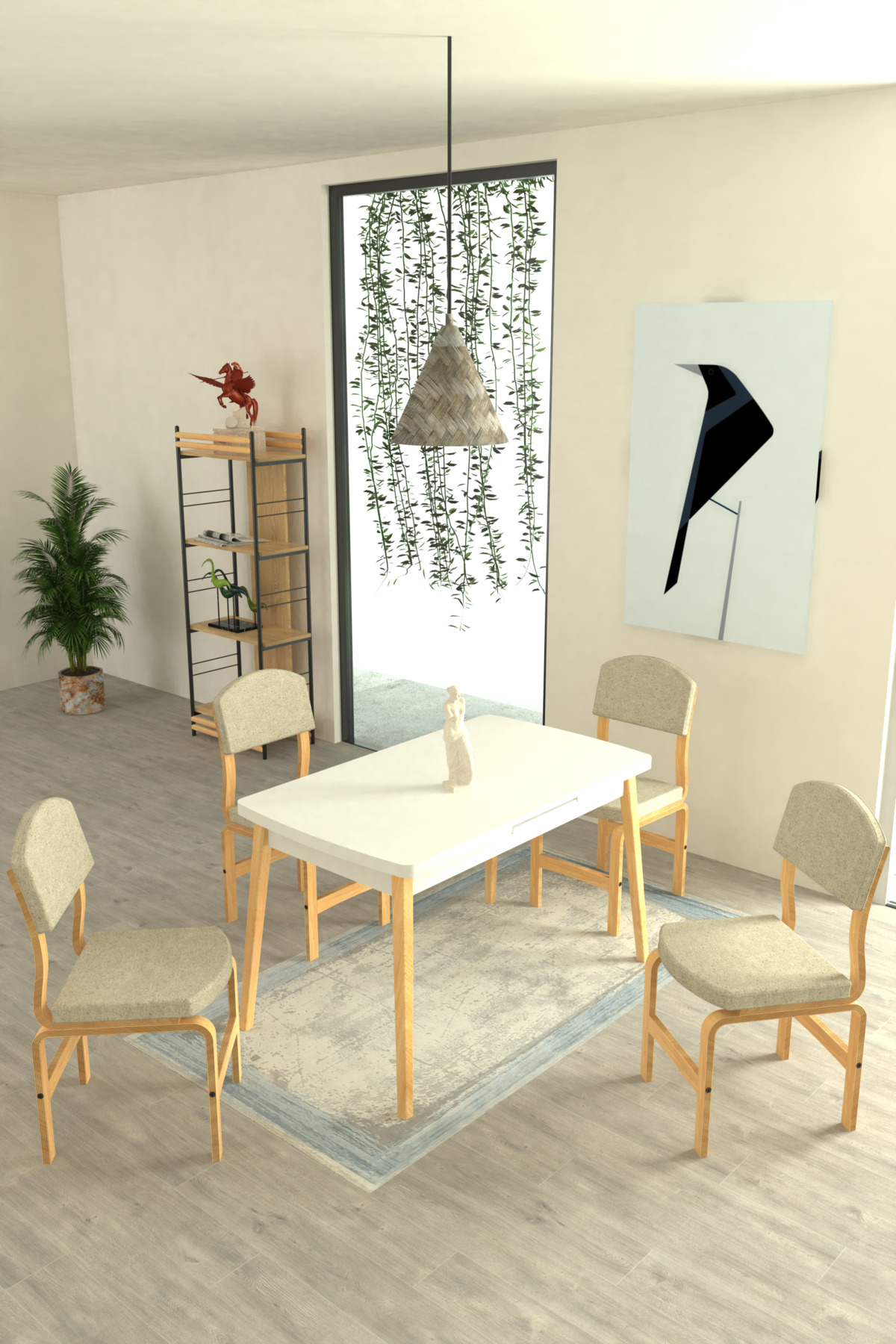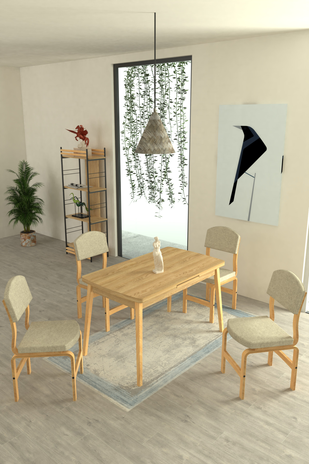 TAKIM İÇERİĞİ 1 MASA VE 4 SANDALYEDEN OLUŞMAKTADIR. SANDALYE ÖZELLİKLERİ Toplam Yükseklik: 88 cm Oturum Yüksekliği: 50 cm Oturum Genişliği: 40 cm Oturum Derinliği: 42 cm Ağırlık: 6.25 kg Ayak: Kayın Ahşap Papel Ayak Rengi: Naturel (Vernikli) Oturak Sünger Kalınlığı: 4 cm Sünger Dansitesi: 32 (Uzun Ömürlü & Orta Sert) Kumaş Özelliği: Antibakteriyel & Antialerjik kolay silinebilir. Kadifemsi yumuşak dokulu, Dokuma Kumaş Taşıma Kapasitesi: 130 kg MASA ÖZELLİKLERİ Ayak: Kayın Ağacı Ayak Rengi: Naturel Kasa Rengi: Naturel Tabla: MDF Tabla Rengi: Naturel Yükseklik: 75 cm Kapalı Genişlik: 120 cm Açık Genişlik: 150 cm En: 70 cm Ayaklar yüzeye eğimli bastığı için masa sallanma yapmaz. Yüzeyi mutfakta kullanıma uygundur, nemli bir bez yardımı ile kolayca temizlenir. Yerli üretimdir. Ürün üst üste istiflenemez. Kurulum Şeması ile müşteri tarafından kurulur. 2 Yıl TSE garantilidir. Tasarım