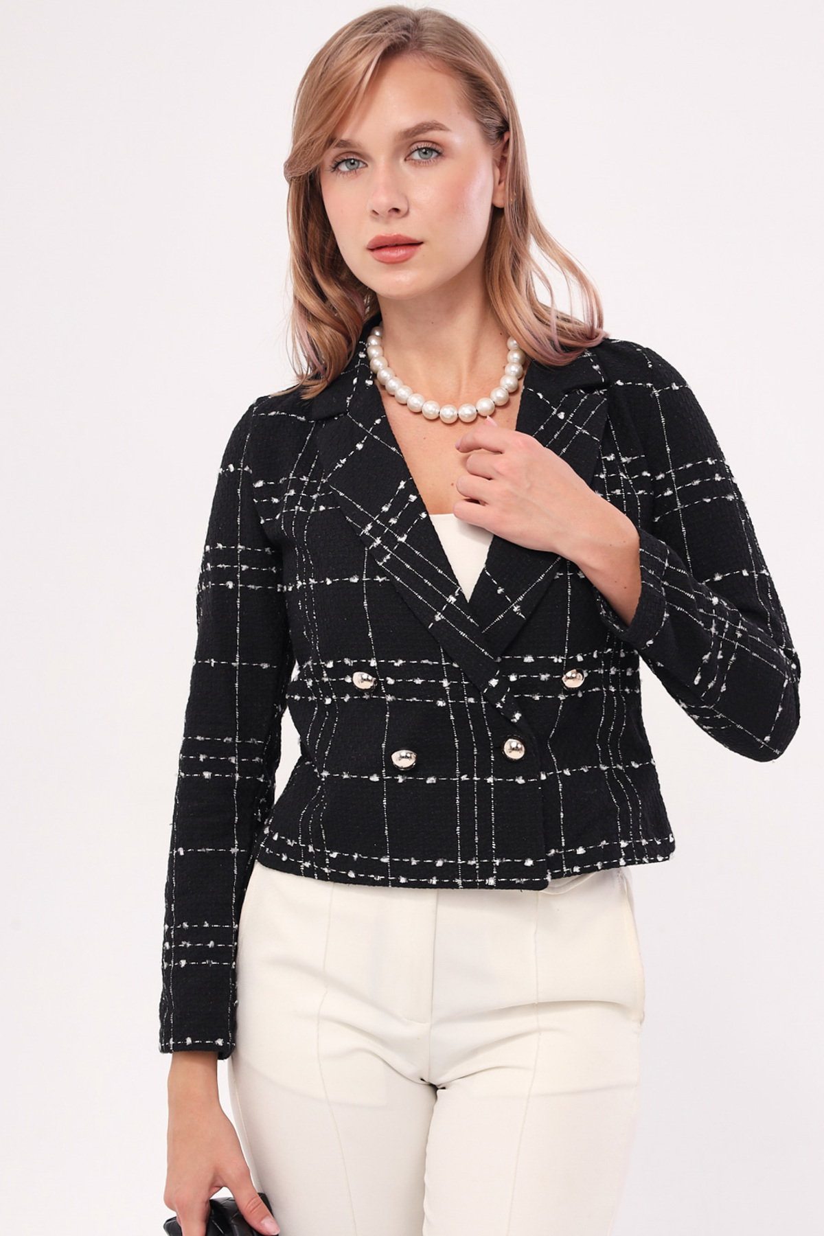 Kruvaze kapama şekli ile modern ve şık bir stil oluşturur